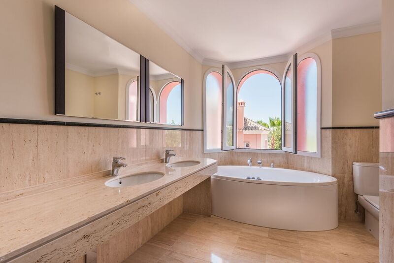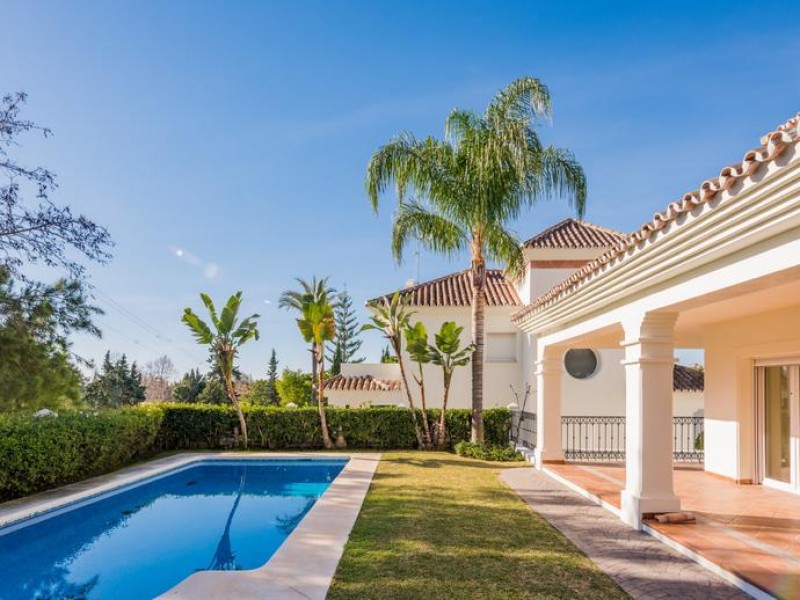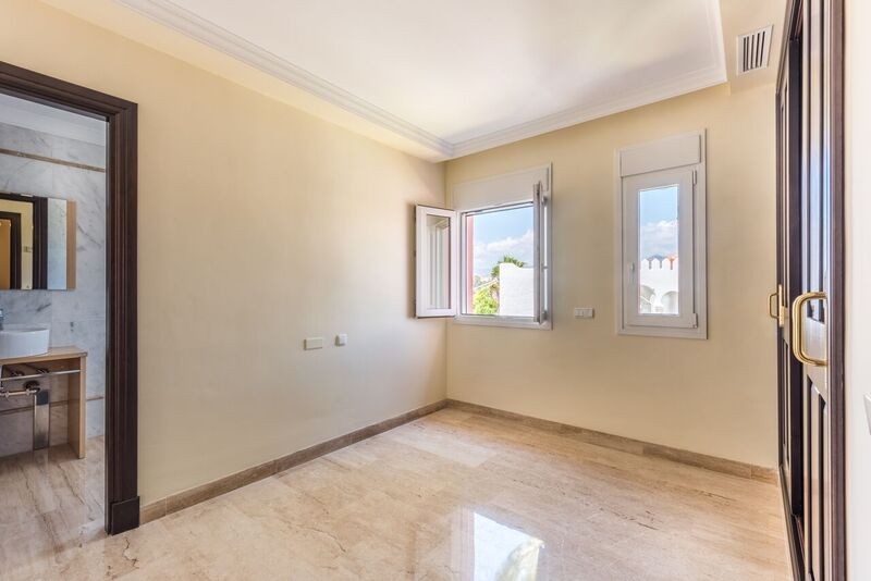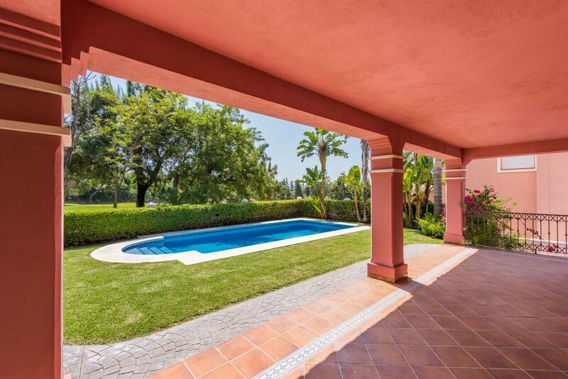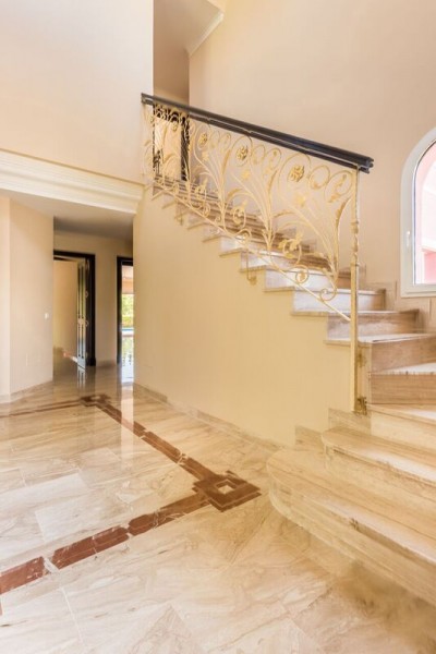 Beautifully villa to the highest standards for sale in Gualdamina Alta looking out over the 5th hole of Guadalmina golf course. It has 4 bedrooms and 4 bathrooms en-suite, spacious and bright living room with fireplace, fully fitted kitchen, air conditioning. 1 en suite bedroom is on the ground floor adn the stairs lead up to 3 en suite bedrooms with the master opening on to the upstairs terrace. The garage and basement have internal access to the house and are fitted out with storage and separate bathroom facilities. Private pool and nice gardens that are easily maintained. It is a perfect choice for golf enthusiasts. Near the beach and a top quality commercial center just around the corner, the frontline golf villa is in a perfect location to enjoy the Marbella lifestyle. Guadalmina is known as one of the most elegant residential areas consolidated in Marbella. It is characterized by its green avenues and by the Real Club de Golf Guadalmina, which is the second oldest golf course in the Costa del Sol. Its impressive streets run through it until you reach the Mediterranean Sea. This has meant that the area of Guadalmina Baja Beach is one of the most popular. Guadalmina infrastructure is excellent, it offers a shopping mall, with plenty of restaurants, shops, banks, cafes and all kind of services and amenities. Just a few minutes drive to San Pedro de Alcántara, famous Puerto Banus, Marbella and Estepona.