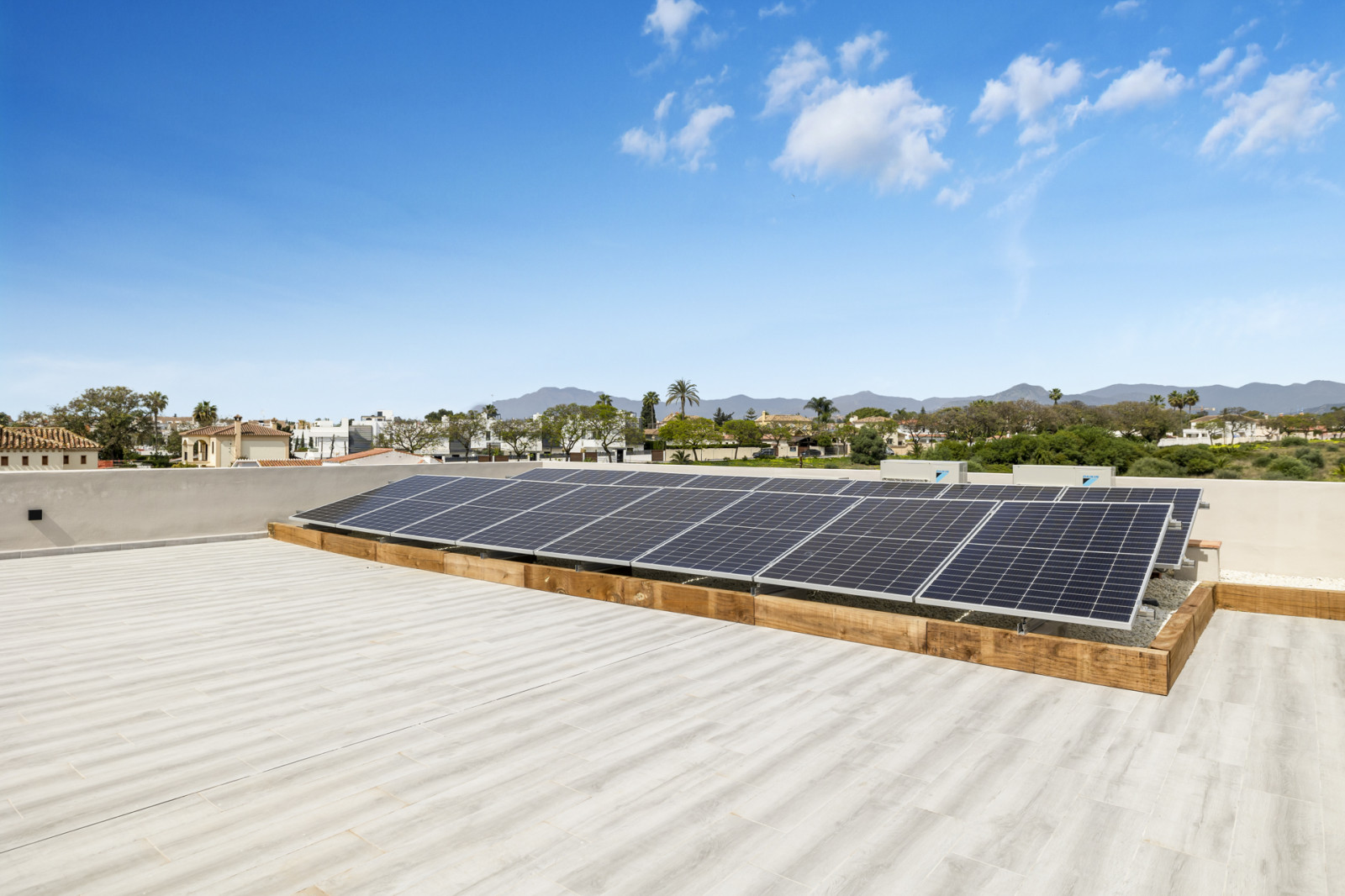 SAN PEDRO BEACH SIDE, MARBELLA Newly built quality villa on the beach side of San Pedro de Alcántara. Build to the highest German qualities. Walking distance to the beach and the paseo of San Pedro. Main floor: Entrance, living and dining area with an fully open plan kitchen with Bosch appliances, guest toilet, one guest bedroom en suite. Access from all areas to the covered and open terraces and the private pool. First floor: Master bedroom en suite with dressing area and one guest bedroom en suite. Private terraces. Roof terrace. Lower floor: A separate apartments with another fully fitted kitchen, one guest bedroom en suite and an entertainment area or gym. Inside parking for two cars. The furniture could be negotiated. A unique location !