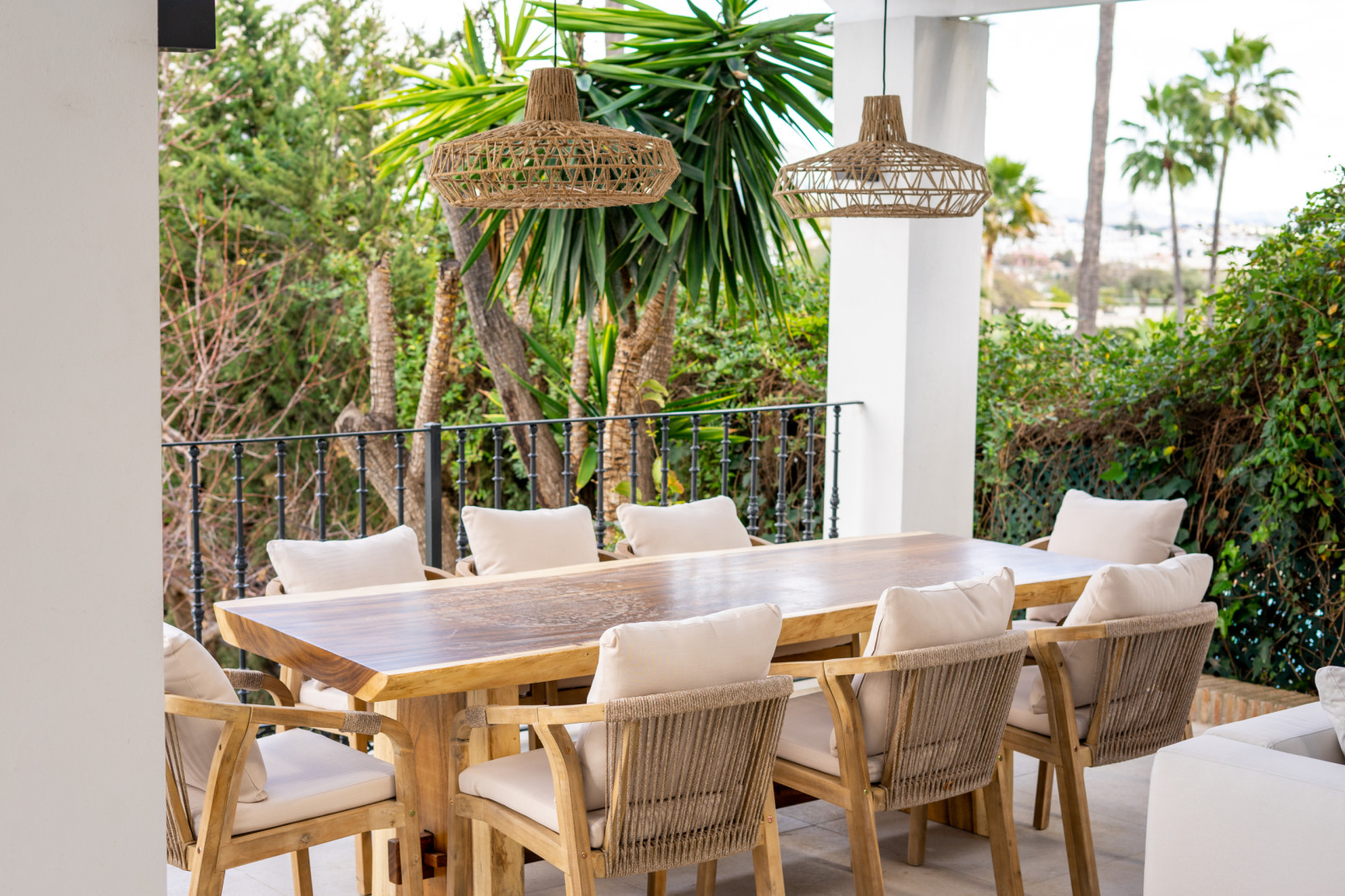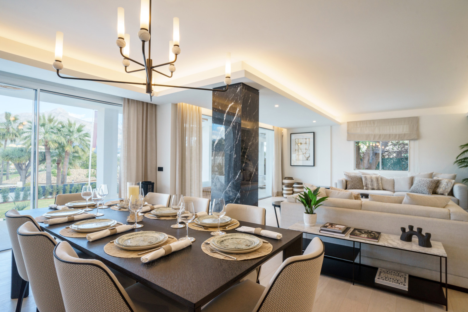 LAS BRISAS GOLF, NUEVA ANDALUCIA MARBELLA Spacious modern villa with 3 out of the 5 en-suite bedrooms distributed on the ground floor, one of them being a cozy private lock-off with its own private entrance, perfect for additional guests coming to visit. On the same floor, you also have a brand new open plan German-made kitchen, a beautiful dining and living area completely furnished and ready to move in. It further features a real wooden fireplace, as well as underfloor heating throughout. Outside dining area and lounge, large outdoor pool in the lush landscaped garden, all completely private. Furthermore, this Villa has a state of art new Finnish Sauna, with direct access to the garden and pool. On the first floor, you have the final two bedrooms, both en-suite, one being the master that has direct access to a large terrace, offering view of the La Concha Mountain – a breathtaking sight to wake up to. The Villa further features a large roof terrace to enjoy the sun in peace all throughout the day with unobstructed views over Las Brisas Golf course. Solar panels for the hot water production.