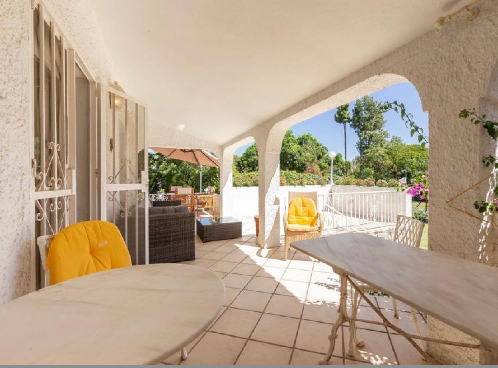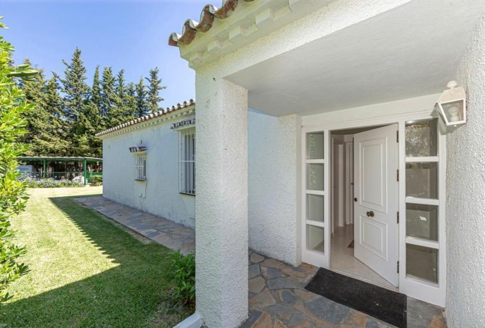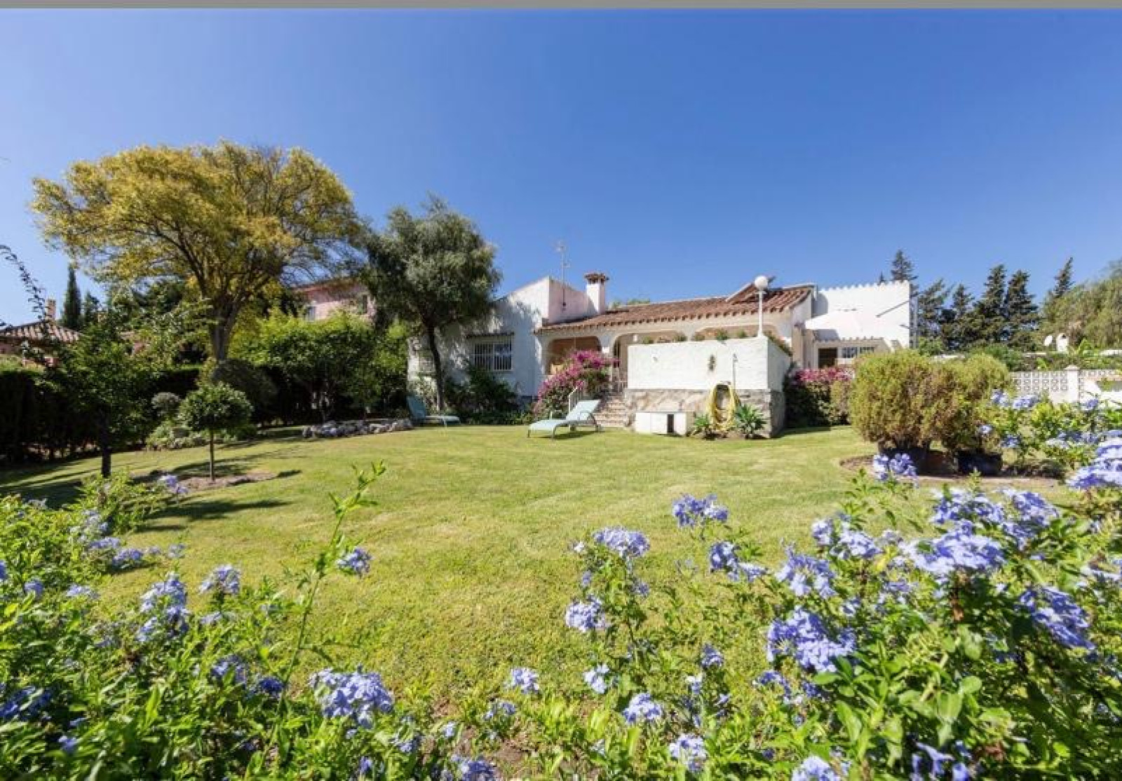 Detached villa, located in the prestigious urbanization of Guadalmina Alta, in Marbella. It borders the Real Club de Golf de Guadalmina. The property has 250 m2, distributed on one floor, and a plot of 1000 m2. It has three bedrooms, three bathrooms, a spacious living room of 50 m2 with fireplace and large windows, office and equipped kitchen with laundry room. From the living room there is access to a spacious and cosy winter porch. Surrounded by golf courses, close to school, shopping centre and public transport. The property is located in a very quiet street. Plot with garden area and garage for few cars and a large storage room. The area is very quiet on the front line of Guadalmina golf. Close to the beach, San Pedro, and Puerto Banus.