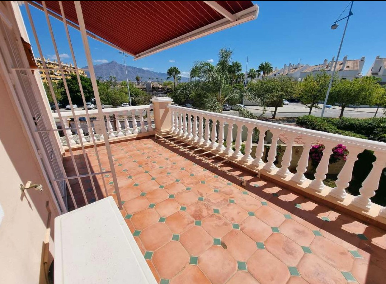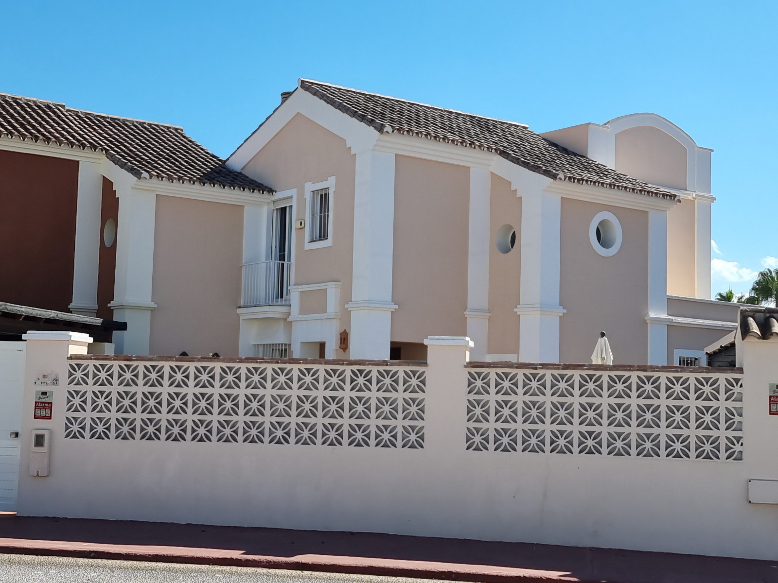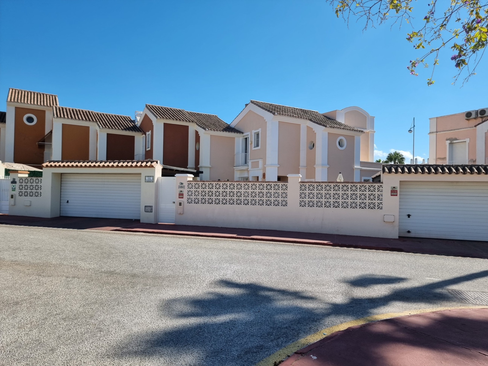Large corner townhouse in one of the best urbanisations in San Pedro Playa. Family friendly and very quiet area, within walking distance to the promenade, the town and all necessary amenities including schools and sports centres, as well as Puerto Banus via the promenade. Puerto Banús can also be easily reached via the promenade. The house is distributed over two floors. On the ground floor there is a spacious living-dining room, a fitted kitchen with utility room, a large glazed terrace and a guest toilet with window. On the upper floor there are three large bedrooms with two bathrooms, and from the master bedroom there is access to a large terrace. In addition, the house has a large perimeter garden with space to build a swimming pool, on a plot of 300 m2. It also has a garage with capacity for two cars, which can be extended to more if desired. The house has solar panels located on the large terrace on the first floor.