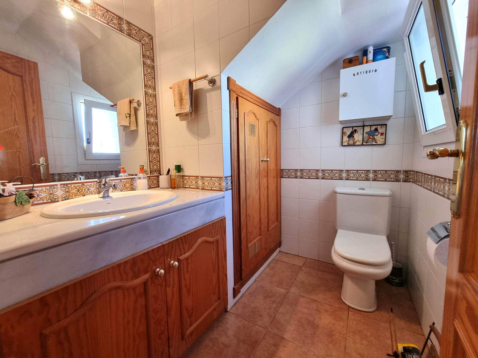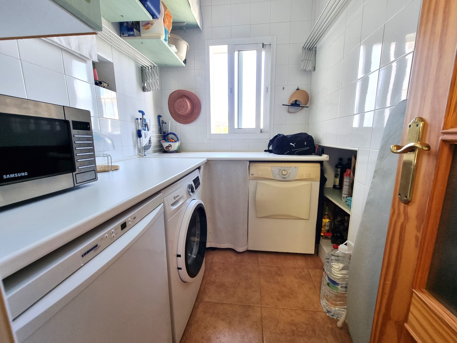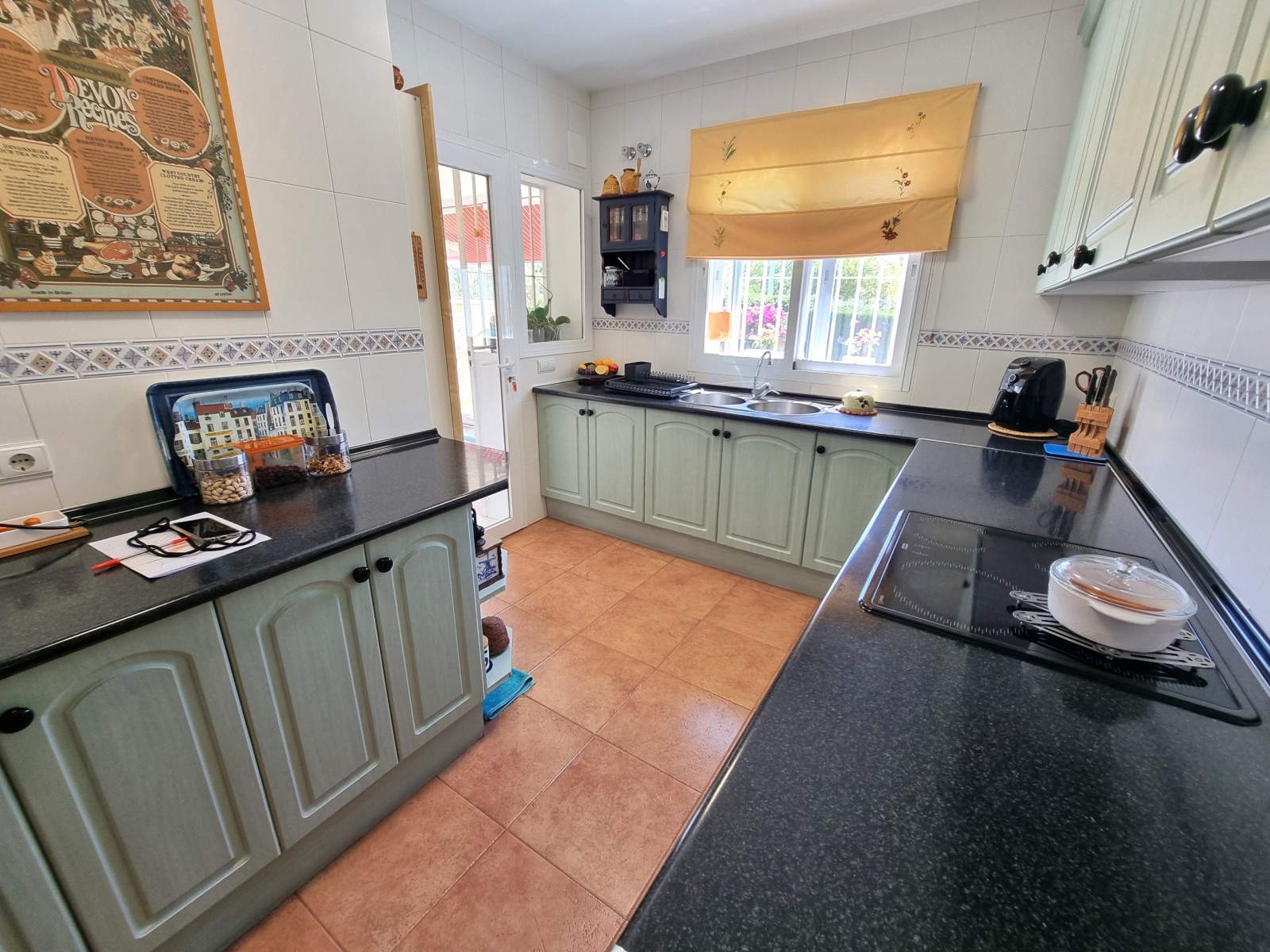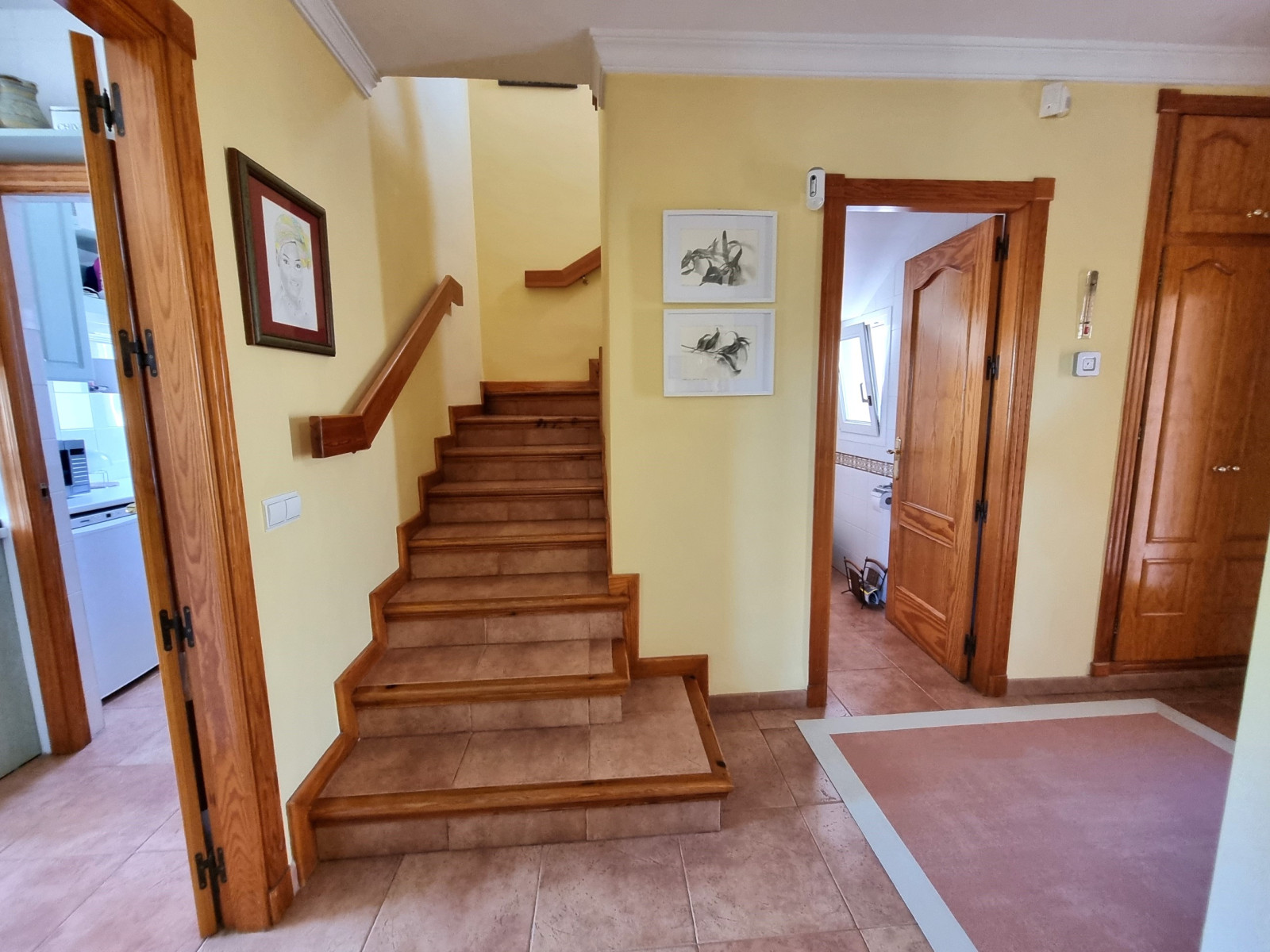 Large corner townhouse in one of the best urbanisations in San Pedro Playa. Family friendly and very quiet area, within walking distance to the promenade, the town and all necessary amenities including schools and sports centres, as well as Puerto Banus via the promenade. Puerto Banús can also be easily reached via the promenade. The house is distributed over two floors. On the ground floor there is a spacious living-dining room, a fitted kitchen with utility room, a large glazed terrace and a guest toilet with window. On the upper floor there are three large bedrooms with two bathrooms, and from the master bedroom there is access to a large terrace. In addition, the house has a large perimeter garden with space to build a swimming pool, on a plot of 300 m2. It also has a garage with capacity for two cars, which can be extended to more if desired. The house has solar panels located on the large terrace on the first floor.