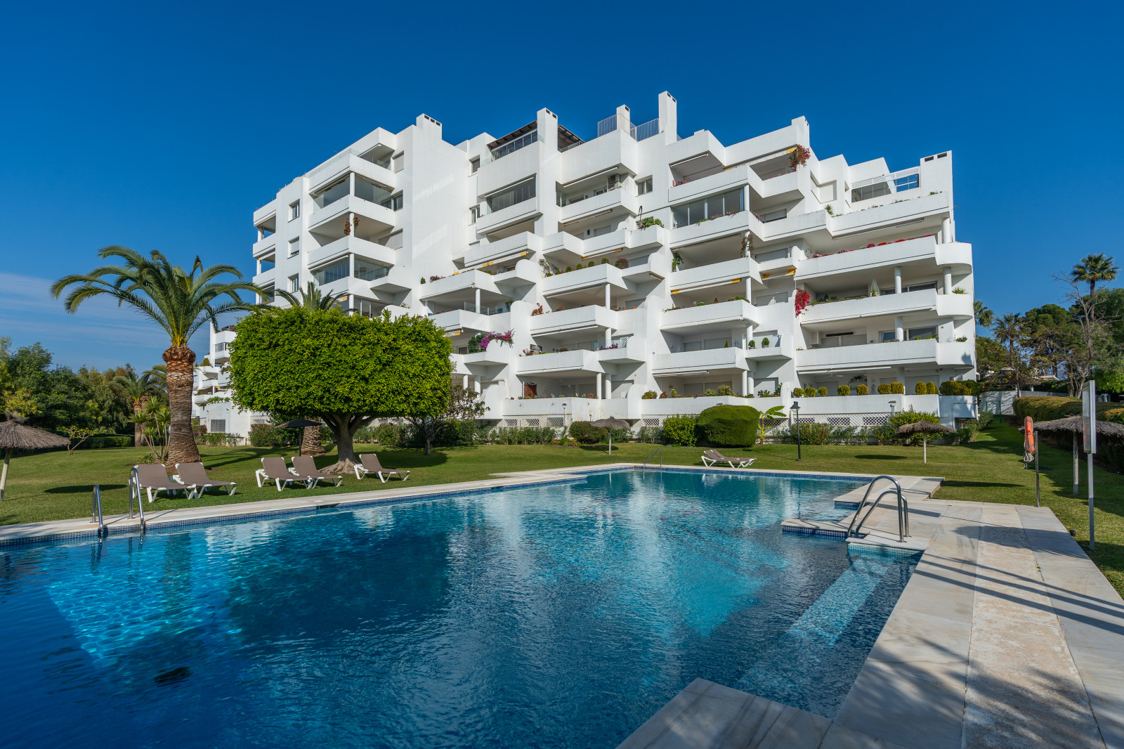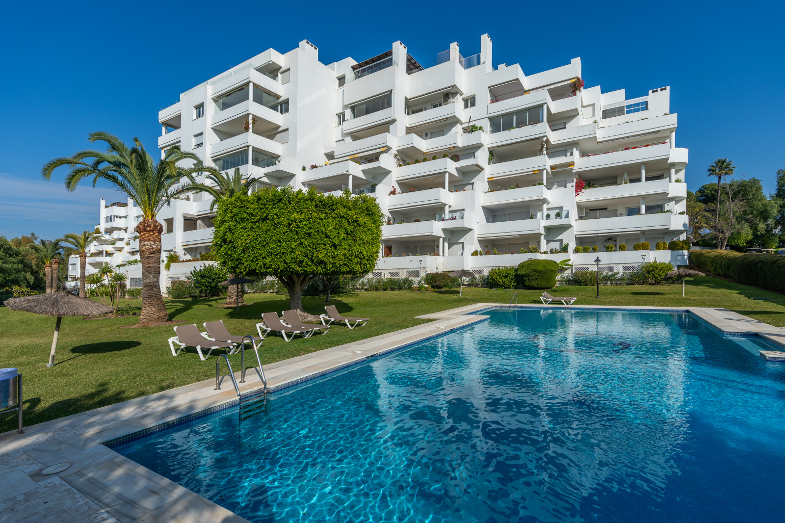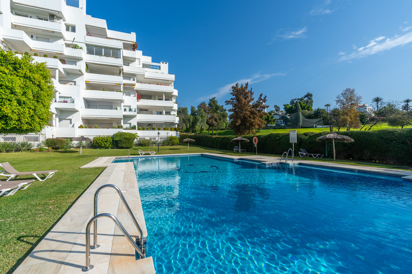 SPECTACULAR APARTMENT IN URB. GUADALMINA ALTA. Ideal for golfers and families who want to enjoy a quiet life around golf. Wonderful three-bedroom apartment in Guadalmina Alta, facing Southwest and views of the sea and golf. It is distributed in a spacious and bright living-dining room with access to a magnificent terrace from which to enjoy the views on long summer afternoons, three bedrooms, three bathrooms, a fully equipped kitchen with a laundry room. Marble floor throughout the house. The building has a community pool and gardens and a few meters from the Club House of the Guadalmina Golf Club. The community offers an excellent garden area with sun loungers, in addition, it has 24-hour video surveillance, a concierge in the community and the apartment has a private alarm system. It is sold with a garage and storage room in a rear building. The apartment has easy access, right next to Hole 1 of par 3 of the Guadalmina golf course. It also has community outdoor parking.