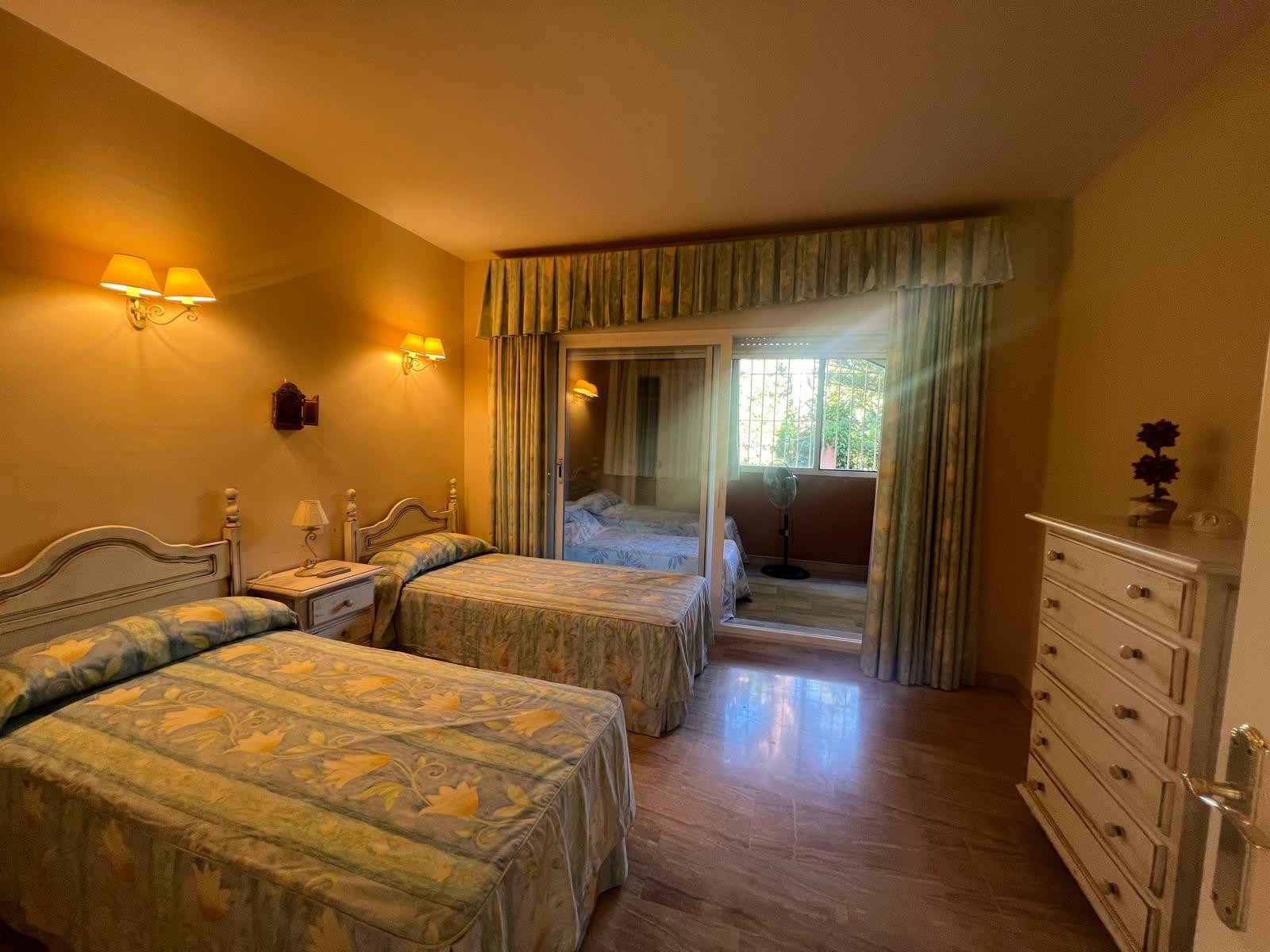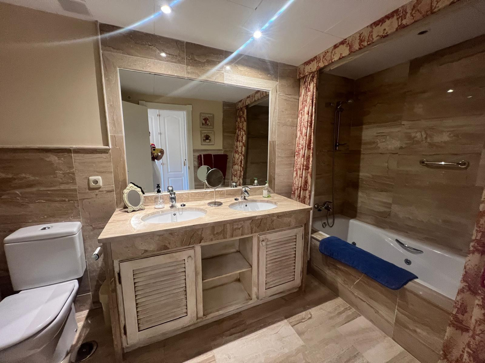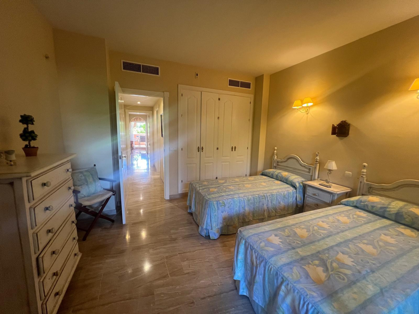 SPECTACULAR GROUND FLOOR IN URB. ALHAMBRA DEL GOLF FASE III Wonderful flat in the urbanization Alhambra del golf, a few meters from the Alhambra Padel Club as well as its proximity to the Real Club de Golf Guadalmina and the beach. 153m2 ground floor with direct access to the pool and main green areas, located in the heart of the urbanization. The property has a master bedroom with en-suite bathroom and access to the terrace, a secondary bedroom and finally a service or complementary bedroom. Spacious living-dining room with fireplace and direct access to a terrace of 30 m2, which allows for a more lounge atmosphere that coexists with an outdoor dining room. Built-in wardrobes in all rooms, air conditioning, a fully equipped kitchen with a room suitable for storing products, food and washing clothes. Finally, it is worth mentioning that the property includes a garage space and its corresponding storage room.