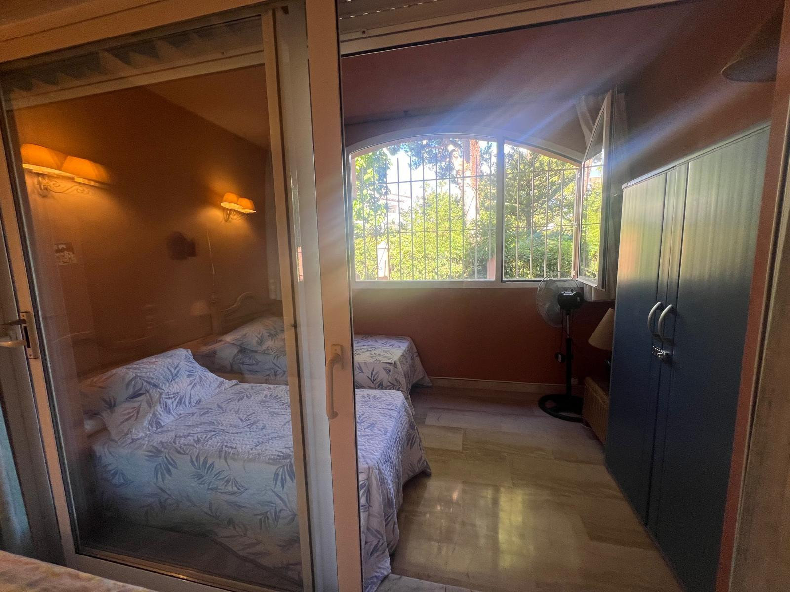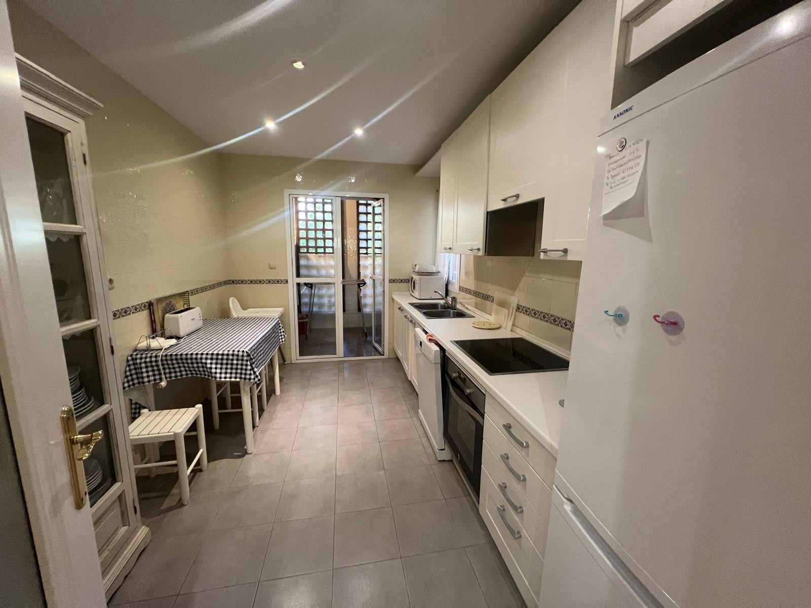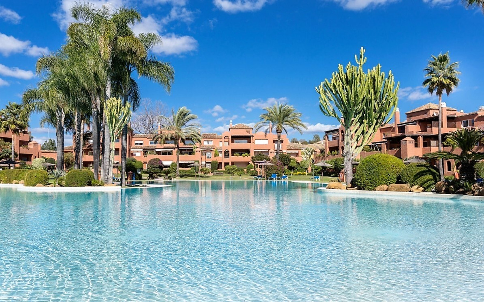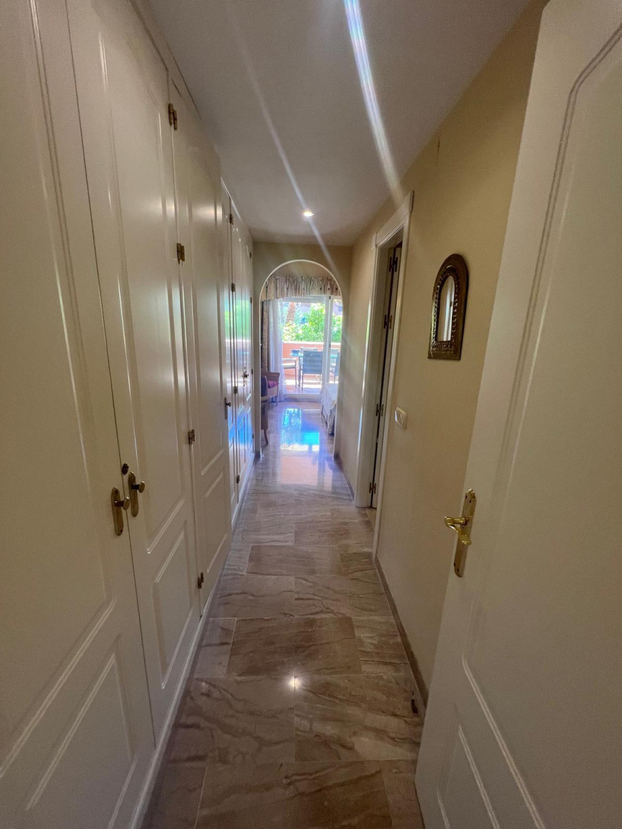 SPECTACULAR GROUND FLOOR IN URB. ALHAMBRA DEL GOLF FASE III Wonderful flat in the urbanization Alhambra del golf, a few meters from the Alhambra Padel Club as well as its proximity to the Real Club de Golf Guadalmina and the beach. 153m2 ground floor with direct access to the pool and main green areas, located in the heart of the urbanization. The property has a master bedroom with en-suite bathroom and access to the terrace, a secondary bedroom and finally a service or complementary bedroom. Spacious living-dining room with fireplace and direct access to a terrace of 30 m2, which allows for a more lounge atmosphere that coexists with an outdoor dining room. Built-in wardrobes in all rooms, air conditioning, a fully equipped kitchen with a room suitable for storing products, food and washing clothes. Finally, it is worth mentioning that the property includes a garage space and its corresponding storage room.