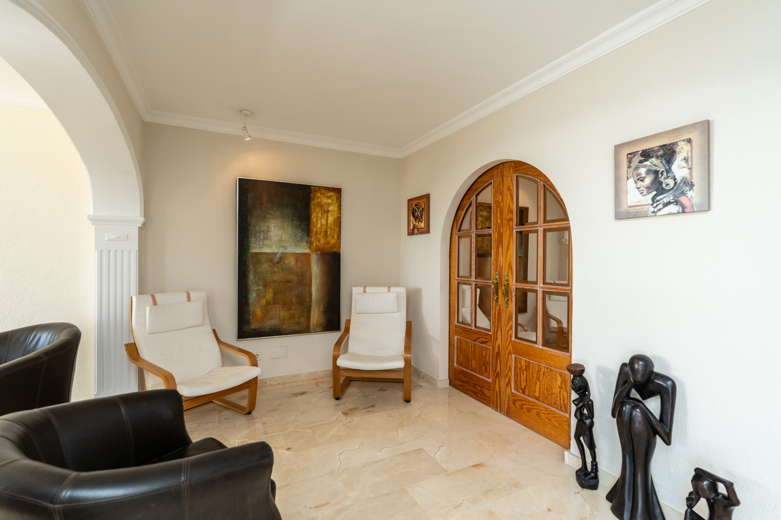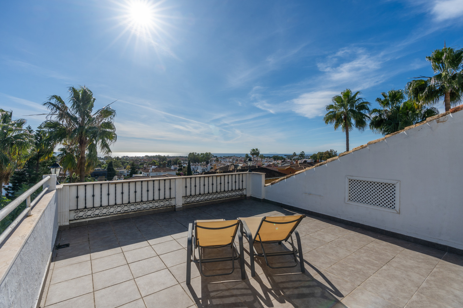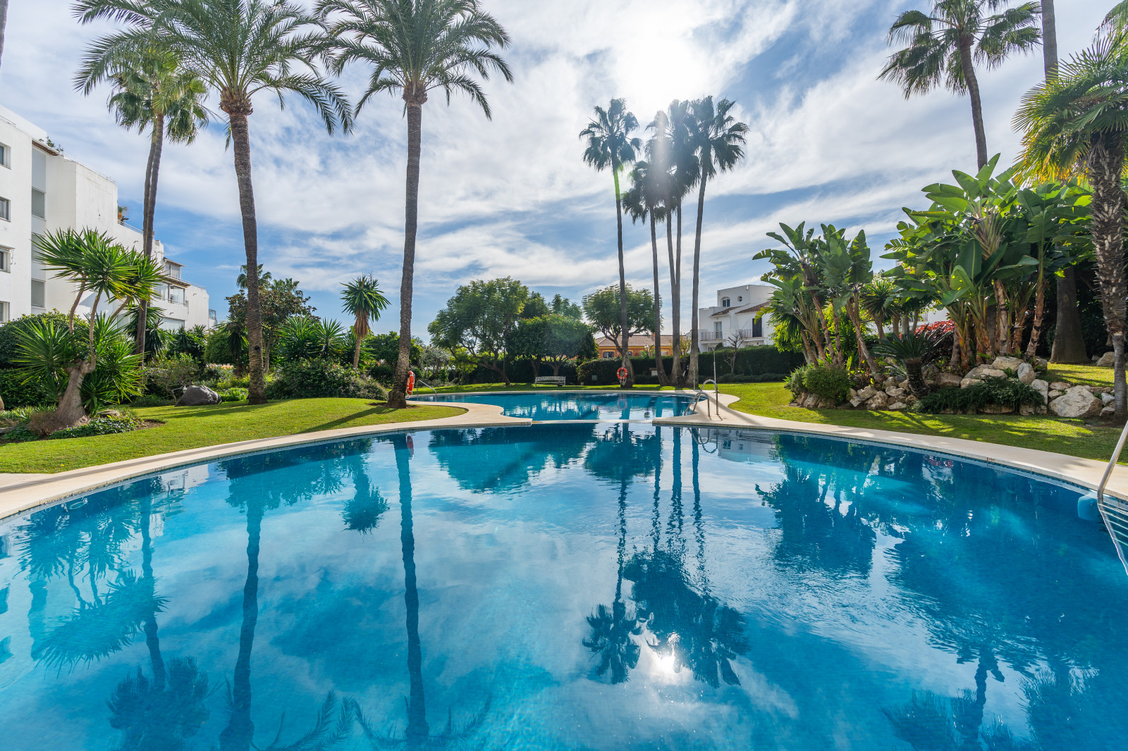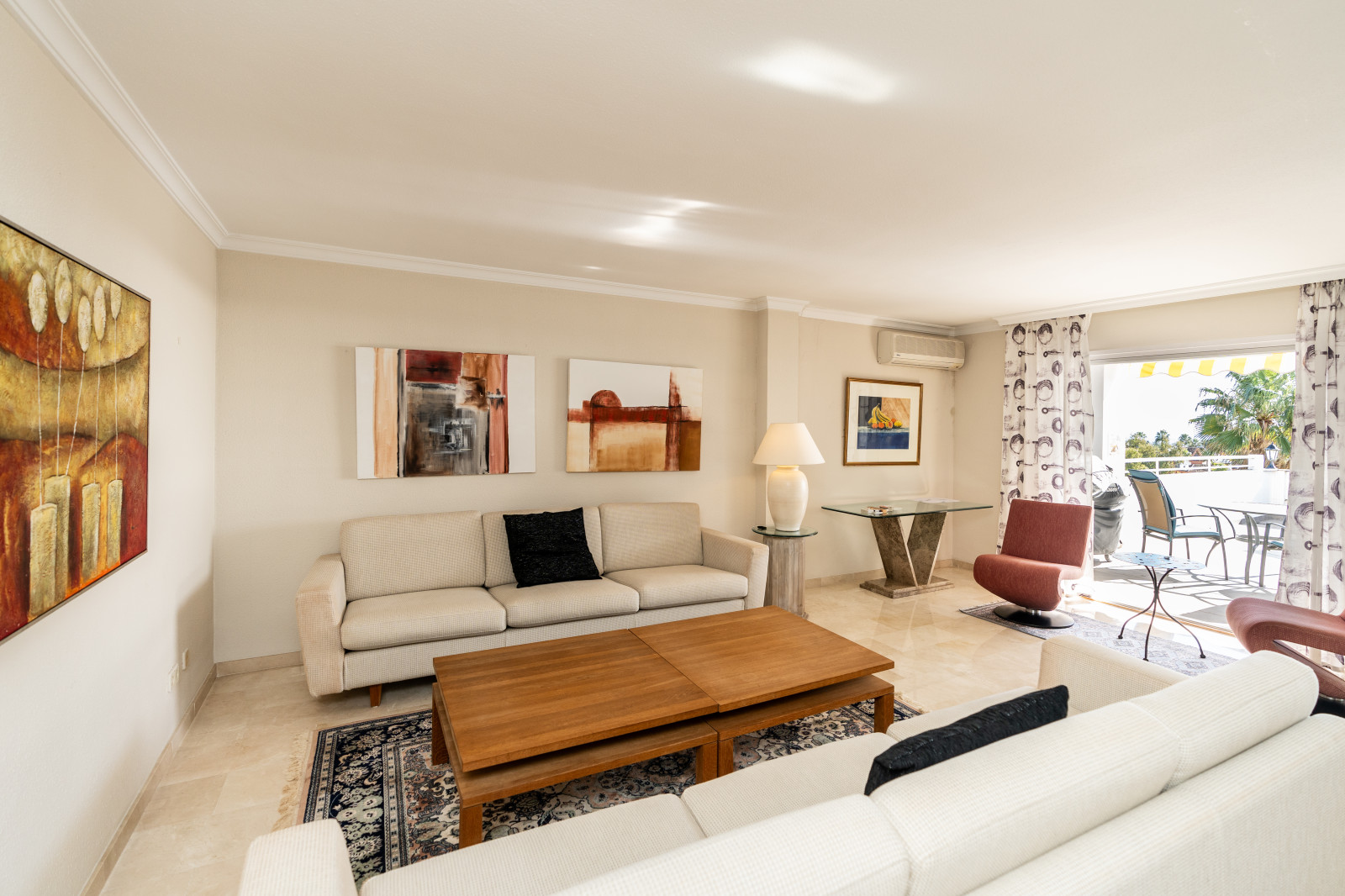 Spectacular double apartment in urb. deluxe. Located in the Nordic Royal Club, a very popular development with the Scandinavian market. Originally two apartments that have been converted into a large apartment of 202m2, and four bedrooms with three bathrooms. The apartment has very high ceilings, a spacious living/dining room with fireplace and direct access to a large terrace, a fully renovated and equipped kitchen, a master bedroom suite, with plenty of built-in storage space. Built-in wardrobes, air conditioning in living room and dining room (splits). The practical and sunny terrace is perfect for relaxing outdoors, it has another terrace. The beautiful community gardens, the swimming pool and all the amenities that the urbanization offers are included in the price of the apartment. It also has two parking spaces and two storage rooms. The apartment has a very high rental potential as the Nordic Royal Club is very popular with the Scandinavian market. It is also perfect as a permanent residence, as the resort offers assisted living, with many amenities such as clubroom, gym, sauna, fitness classes, library, billiard room, 24-hour reception service and medical assistance, among others. The gated community is located east of Estepona, just 1.5 km from El Saladillo beach and 1.7 km from San Pedro beach .