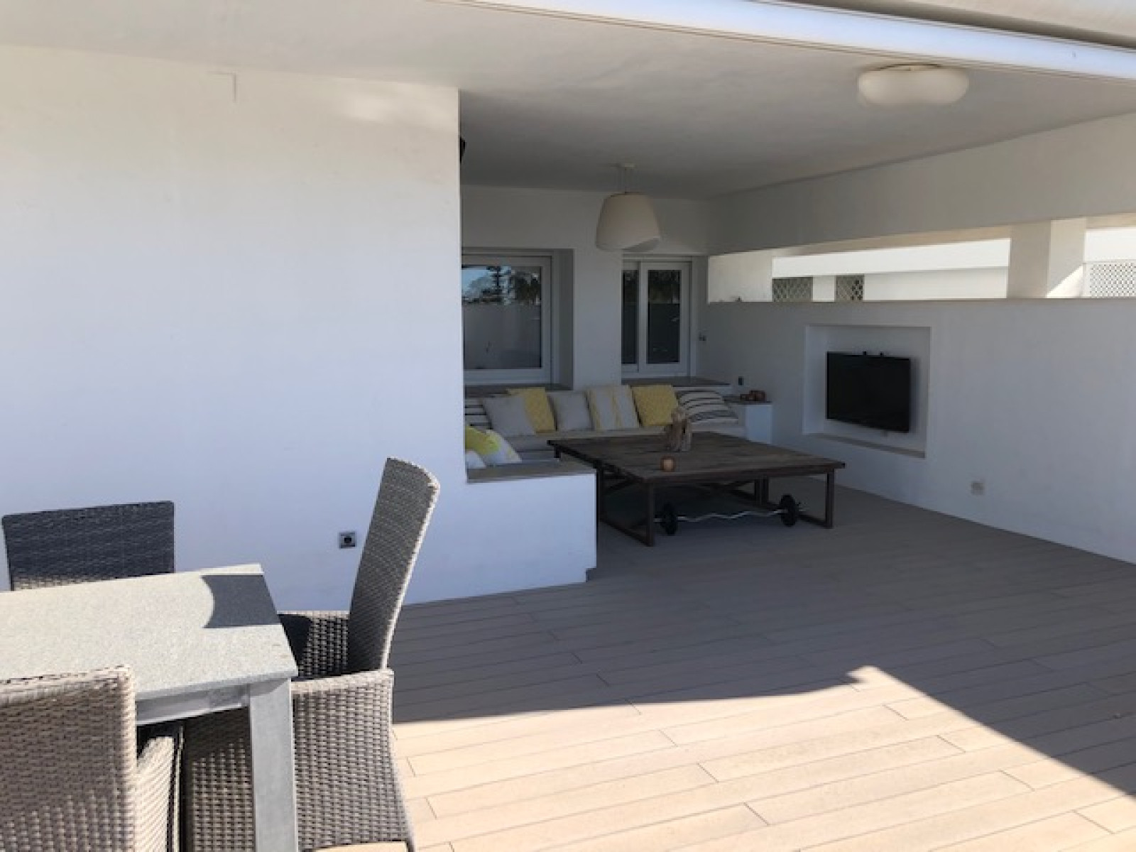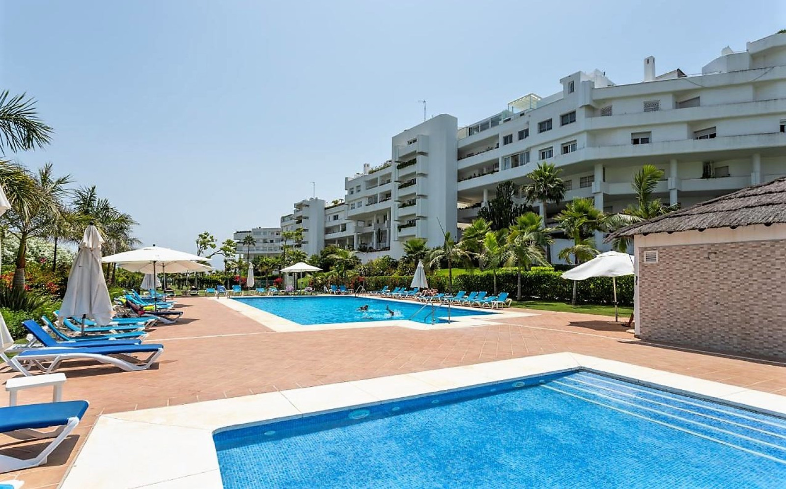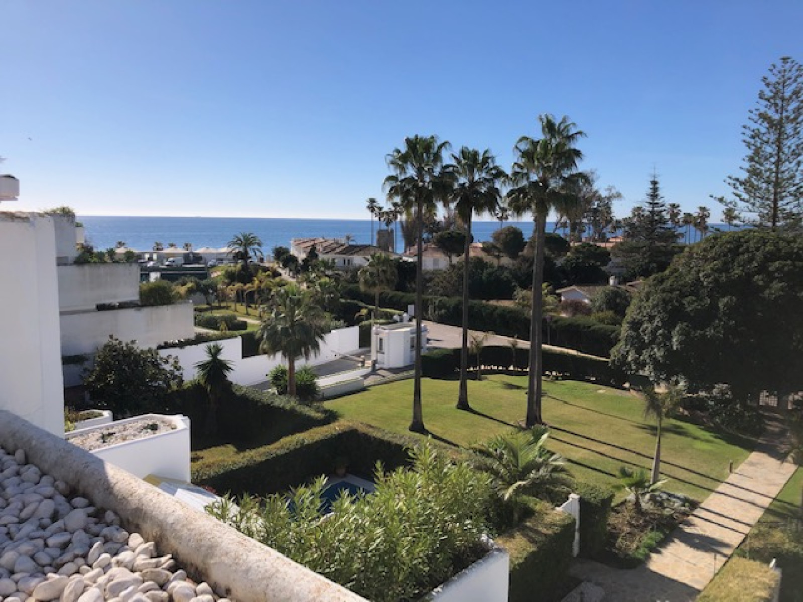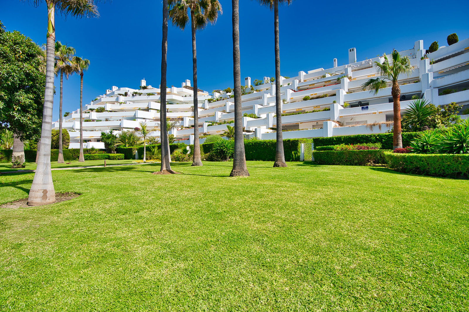 SPACIOUS APARTMENT WITH SEA VIEWS. Spectacular flat with excellent sea views in one of the best developments in Guadalmina Baja, Parque del Sol, a front line beach development. This flat stands out for its brightness and its sea views. It has 2 double bedrooms, each with en suite bathroom. The kitchen, fully renovated and equipped, integrates perfectly with the spacious living-dining room, creating an ideal environment to enjoy unforgettable moments, in addition it can easily be closed, spacious living-dining room that gives access to a large terrace of 88 m², with relax and dining area to enjoy the views of the Mediterranean. The flat has air conditioning, fitted wardrobes, double glazed windows. An underground parking space is included in the price. The urbanisation offers top quality services such as 24 hour security, large landscaped gardens, a communal swimming pool and direct access to the beach.