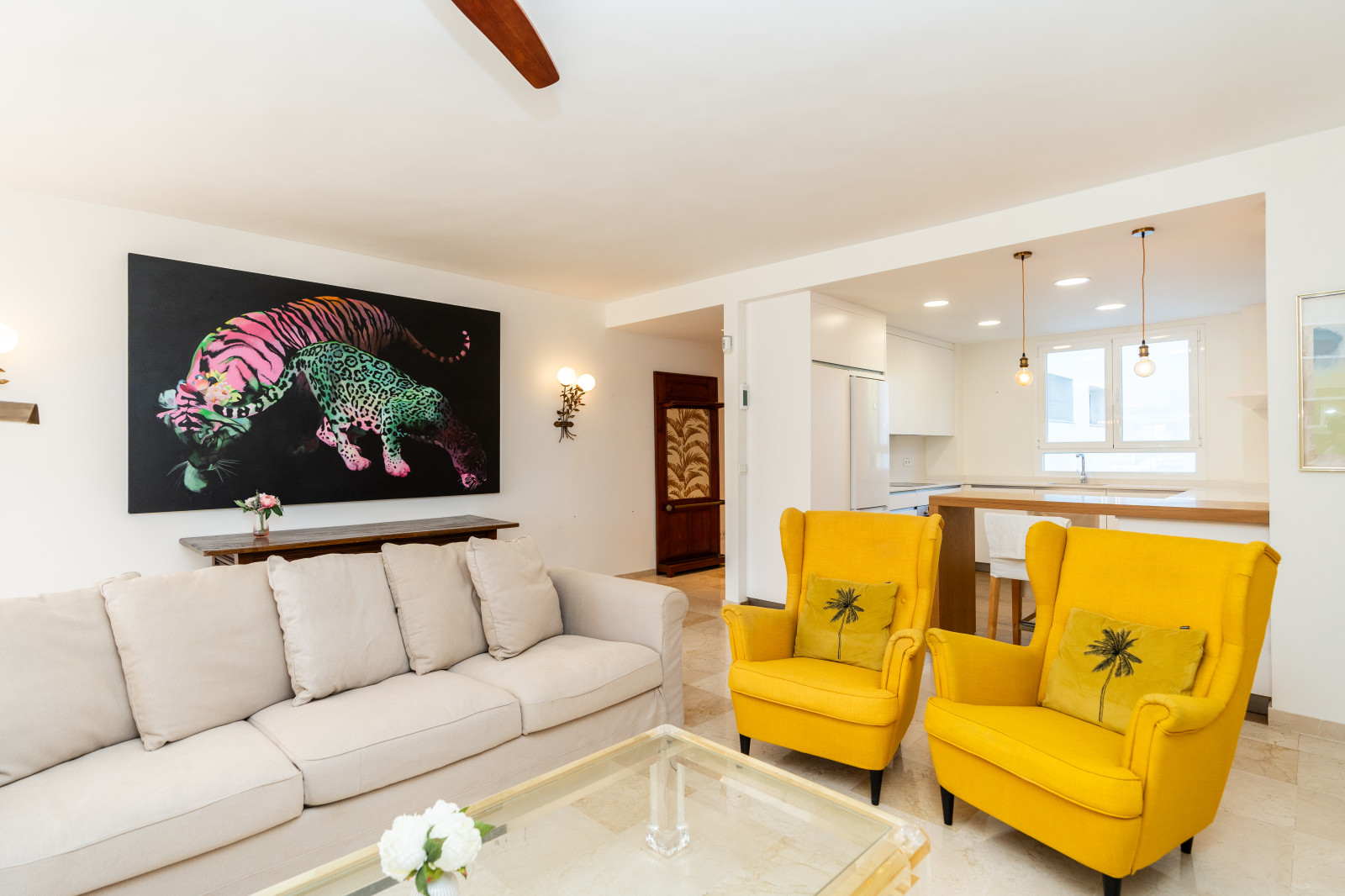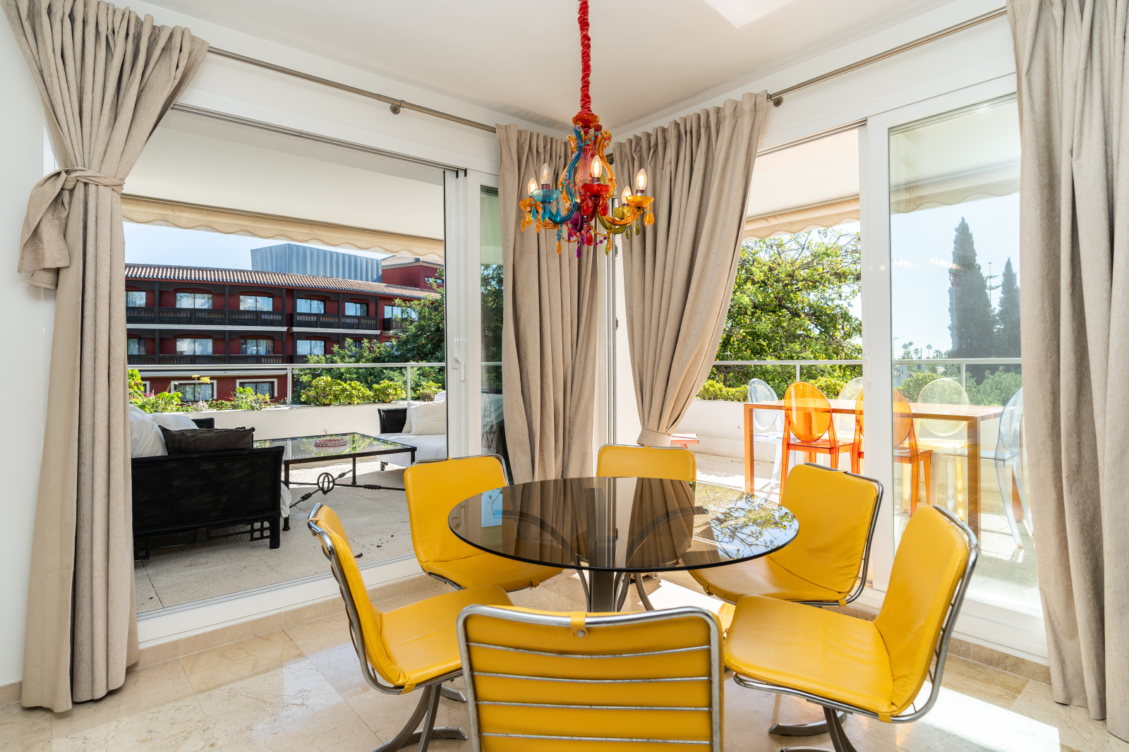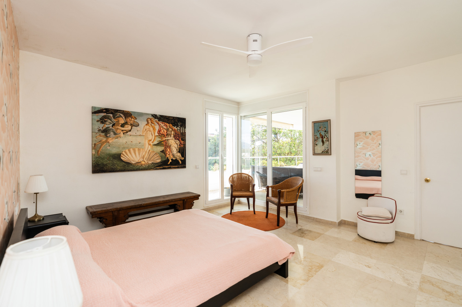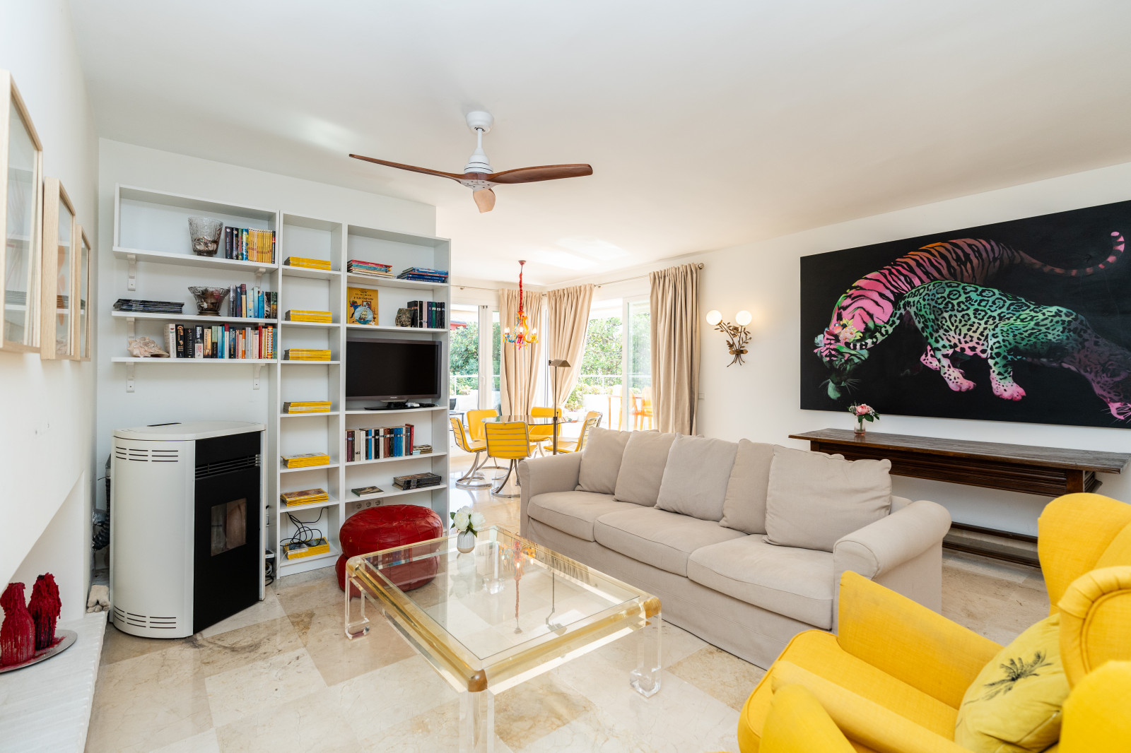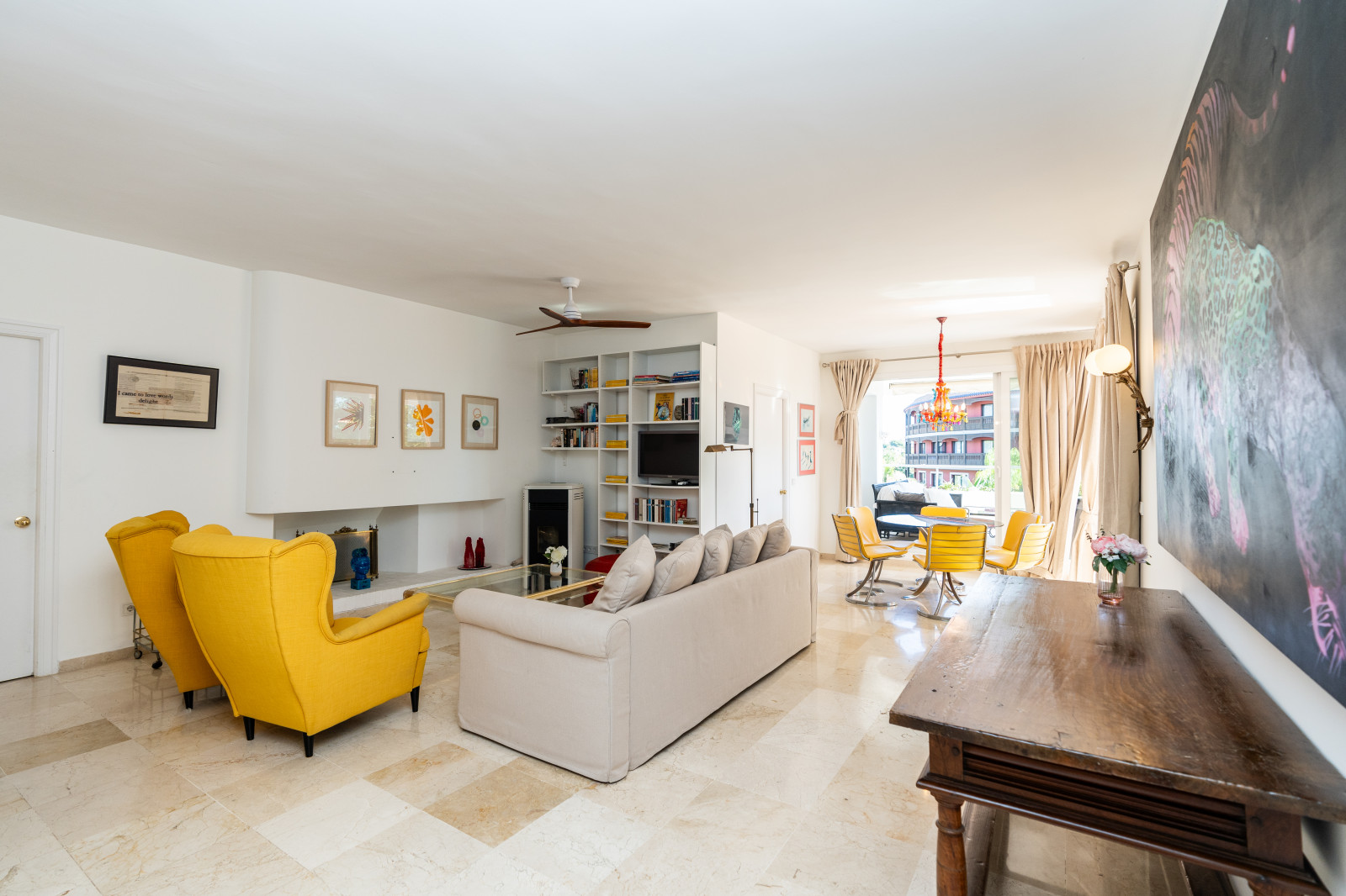 SPECTACULAR APARTMENT WITH NATURAL LIGHT, SPACIOUSNESS AND GOLF VIEWS: true luxury in Guadalmina Alta Located in the quietest and greenest part of Guadalmina Alta, with no noise and complete privacy. Just 1 km from the Guadalmina shopping centre and the village of San Pedro, less than 5 minutes from the beach and 10 minutes by car from Puerto Banús and Marbella. 150 m² property with large windows that flood every room with natural light. 52 m² living room with open-plan kitchen, connected to a 30 m² terrace with panoramic views of the golf course, mountains and communal garden. Three spacious bedrooms (22.43 m² – 17.28 m² – 15 m²) with eight large fitted wardrobes. Triple orientation to the southeast, north and west: light from sunrise to sunset. Pellet stove and fireplace for winter and ceiling fans for summer. A cool, bright and cosy home all year round. Enclosed 22 m² garage space, also perfect as additional storage. In addition, the building has communal parking for a second vehicle or guests. Direct access from the garden—on foot or by buggy—to the Guadalmina Golf Club.