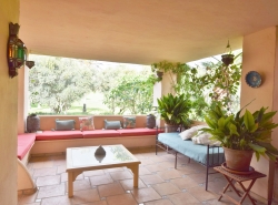 El jardín, que rodea toda la casa, incluye una bonita piscina ideal para los niños, y un amplio césped con tumbonas. Esta villa, situada a pocos minutos andando del los mejores restaurantes del centro comercial de Guadalmina, es el lugar ideal para pasar una vacaciones inolvidables con familiares o amigos.