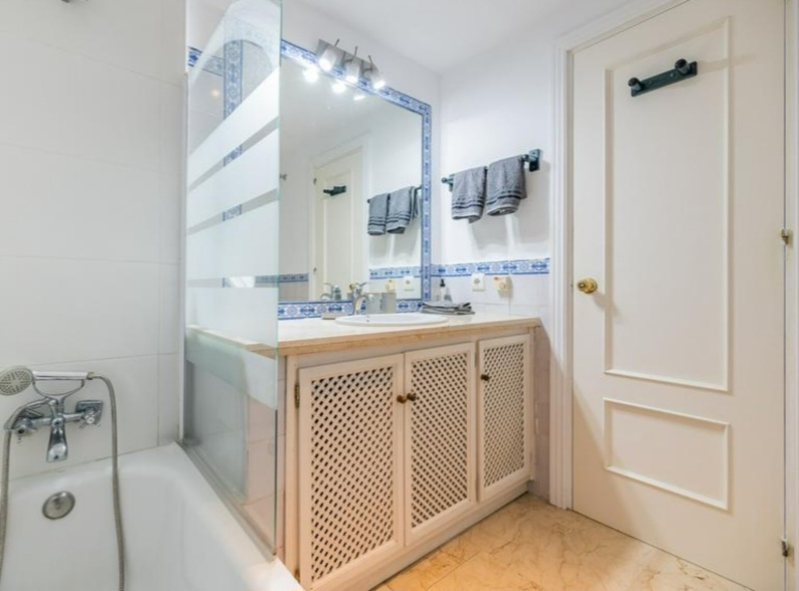 Bonito apartamento en venta en Guadalmina Alta, se distribuye en amplio y luminoso salón comedor con acceso a la terraza, 2 dormitorios y 2 baños, cocina totalmente equipada, aire acondicionado. Totalmente reformado en 1ª linea de golf en Terrazas de Guadalmina. Urbanización Terrazas del Gualdamina situada en Guadalmina alta a pie de centro comercial, restaurantes, bares y el prestigioso campo del golf de Guadalmina. El complejo cuenta con piscina, jardines y pista de pádel. Se vende con inquilnos.
