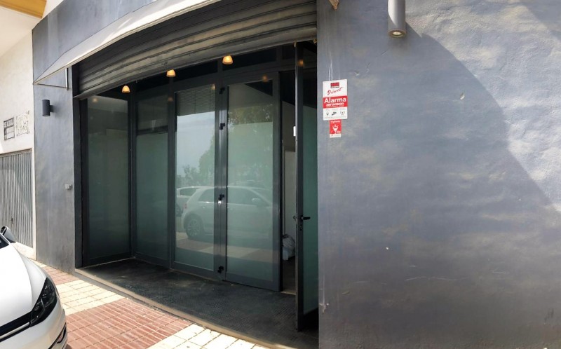 "Estupendo local para alquiler en pleno centro de San Pedro Alcántara, con 100m2, oficina, y cuarto de baño, reformado, cerca del Boulevard y del colegio María Teresa de León." A pie de calle con escaparate.
