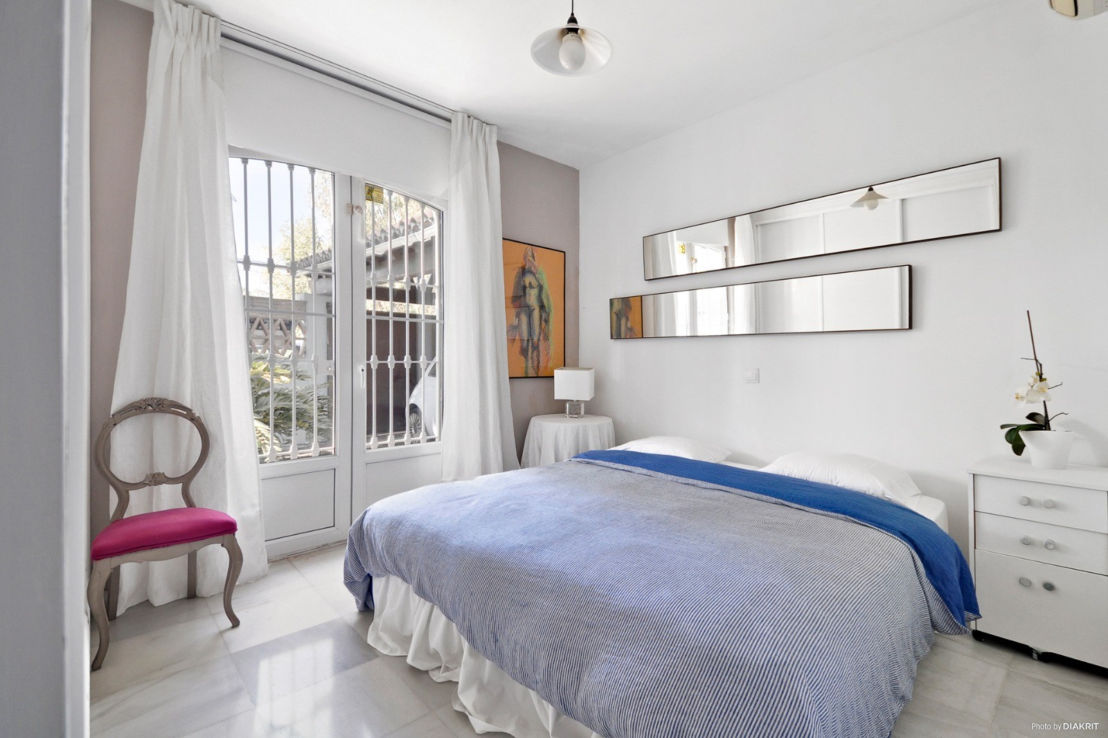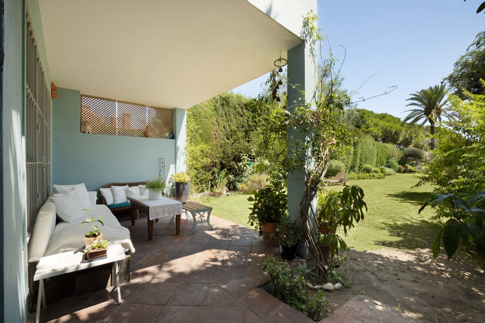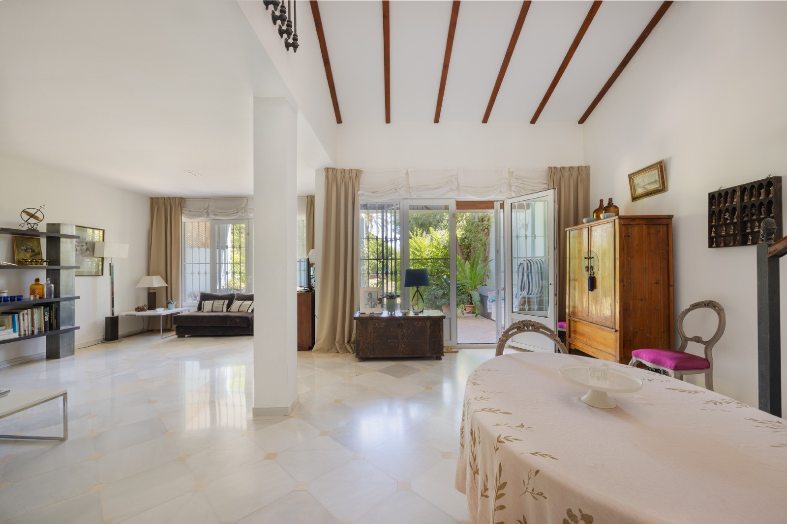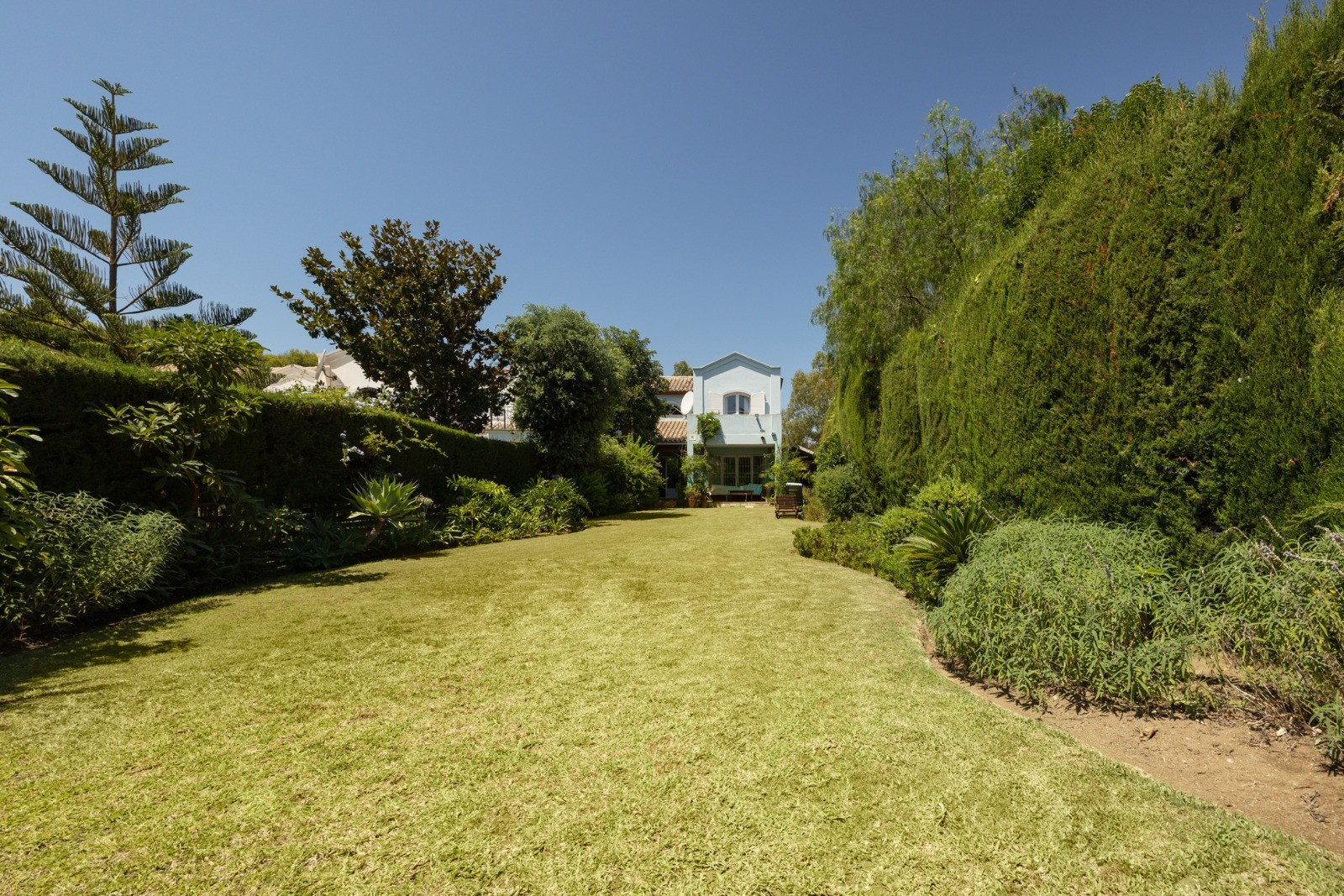 En exclusiva urbanización en Guadalmina Alta, y rodeada hermosas zonas ajardinadas desde una posición con inmejorables vistas al campo de golf de Gualdamina, se encuentra esta casa pareada que cuenta con una superficie de m² distribuidos entre dos plantas, y con un sótano diáfano. En la planta principal encontramos un bonito y luminoso salón comedor con acceso directo al porche y al jardín privado que rodea parte de la vivienda, una cocina totalmente equipada con comedor secundario, electrodomésticos y armarios empotrados. Un dormitorio con cuarto de baño en suite. Esta propiedad dispone de doble orientación ya que tiene sol de mañana y tarde. Suelo radiante en los baños. Las Escaleras internas conectan la planta principal con el primer Piso donde se encuentran otros dos dormitorios con baños en suite y armarios empotrados, uno de ellos tiene acceso a su propia Terraza con vista panorámica, y baño con cúpula. Dispone de aire acondicionado y calefacción. Plaza parking para dos coches.