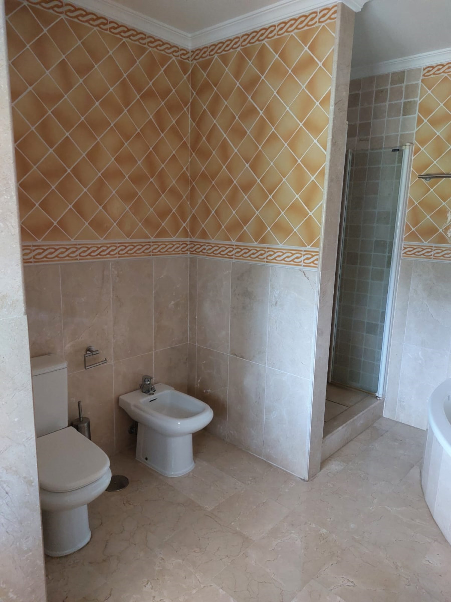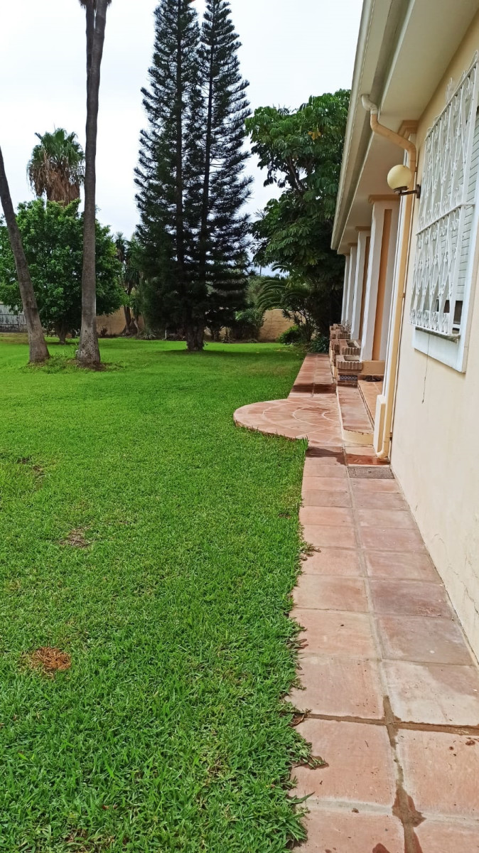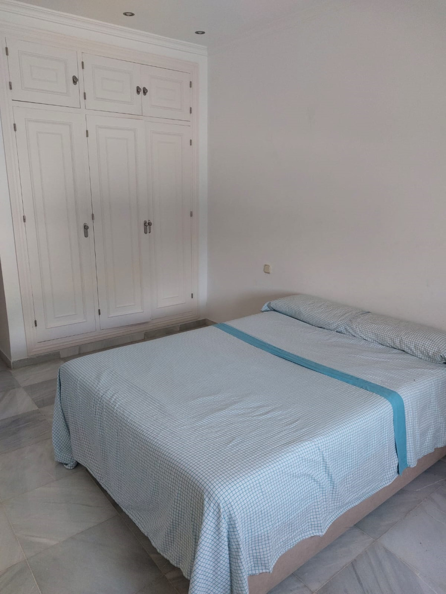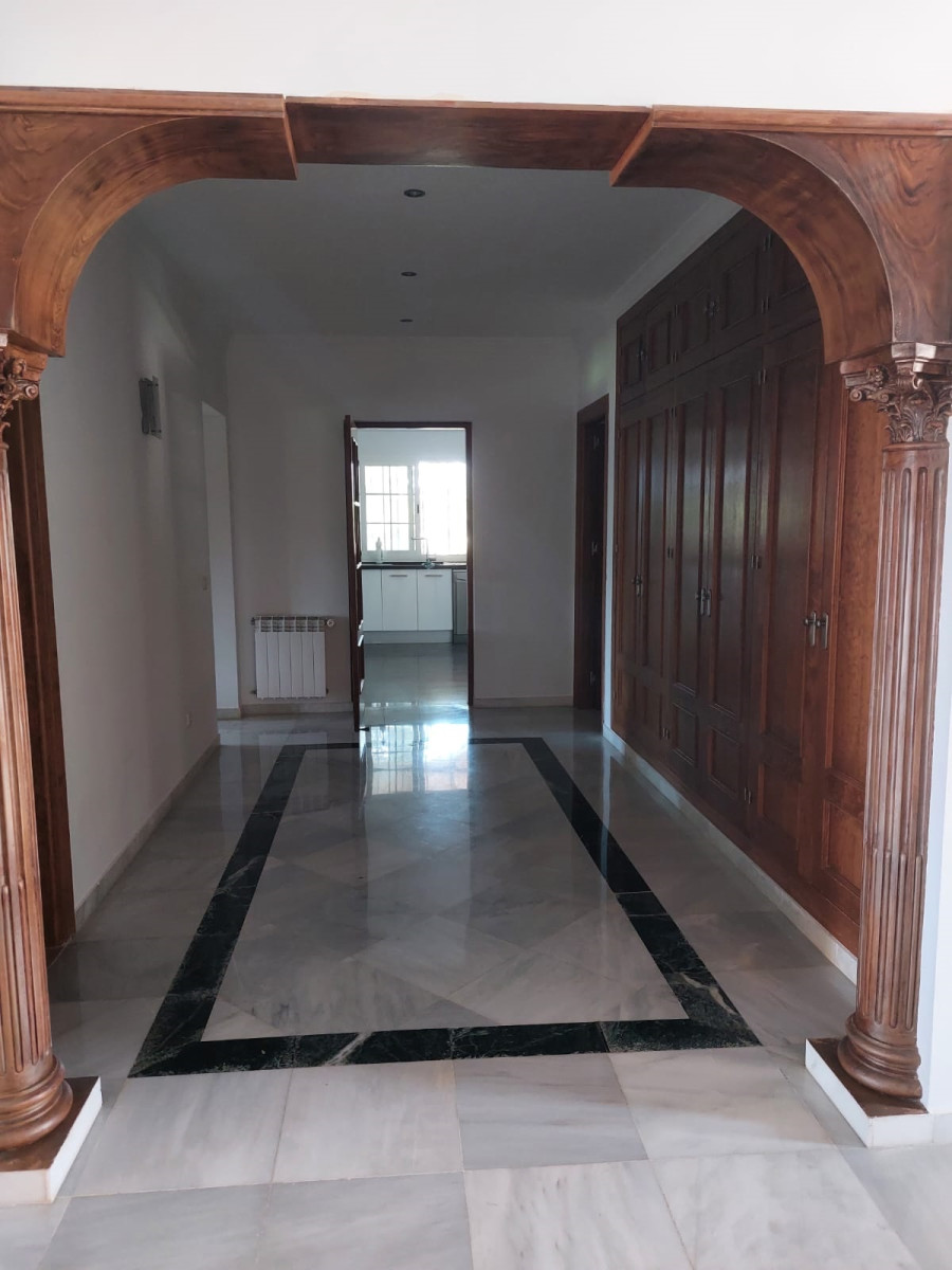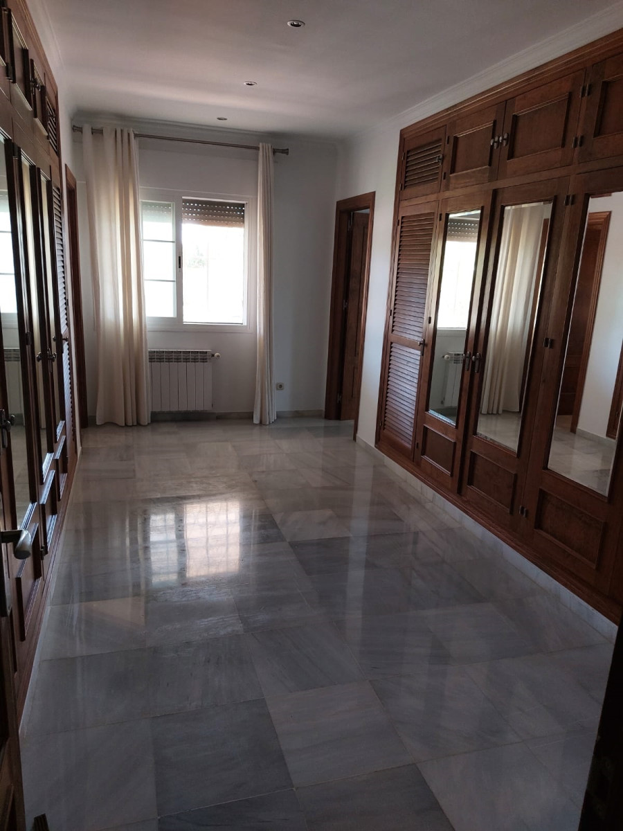 Bonita villa en alquiler Larga temporada en zona Selwo. Villa de gran tamaño, con orientación sureste. Dispone de gran salón comedor con chimenea, cuatro dormitorios, un despacho, cocina equipada, habitación independiente para invitados o servicio, y con gran parcela con piscina, jardín y fuente. Incluye el agua ya que tiene pozo propio. Dispone de alarma y la jardinería está incluida.