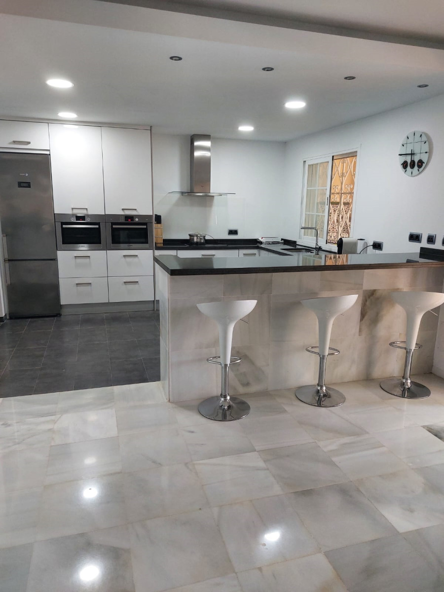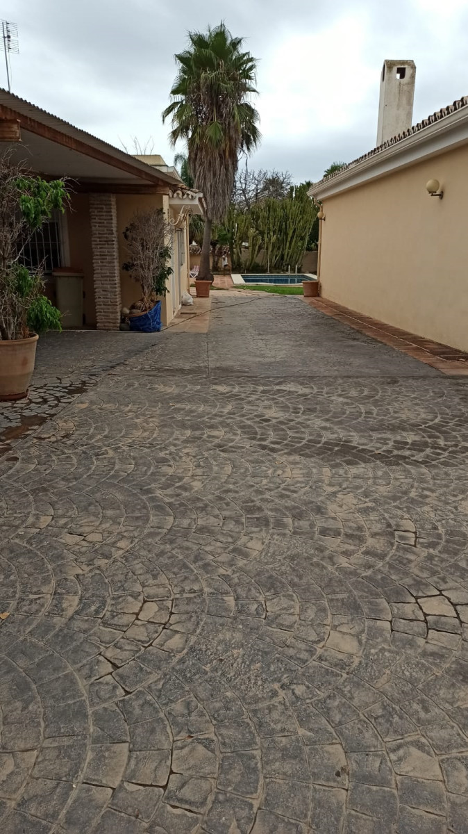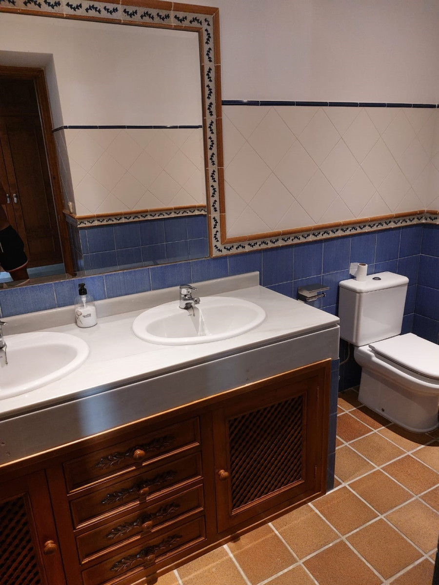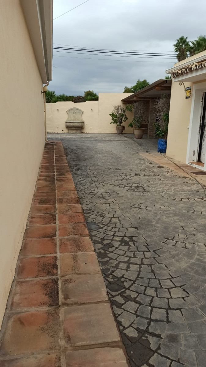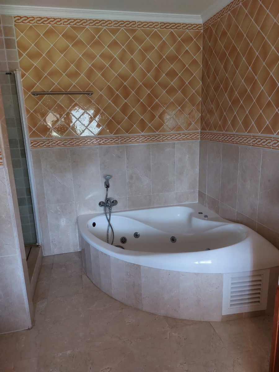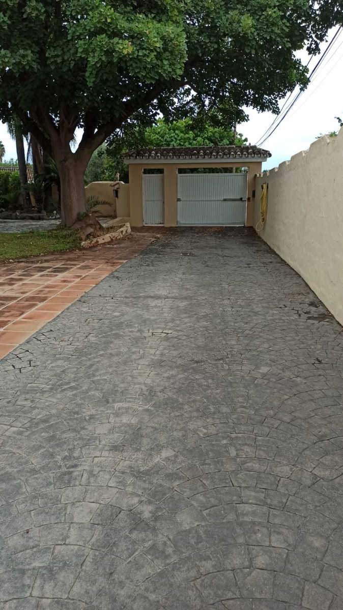 Bonita villa en alquiler Larga temporada en zona Selwo. Villa de gran tamaño, con orientación sureste. Dispone de gran salón comedor con chimenea, cuatro dormitorios, un despacho, cocina equipada, habitación independiente para invitados o servicio, y con gran parcela con piscina, jardín y fuente. Incluye el agua ya que tiene pozo propio. Dispone de alarma y la jardinería está incluida.