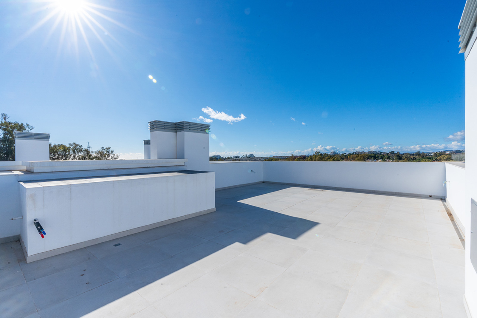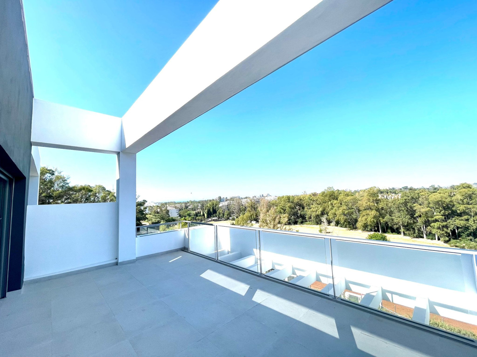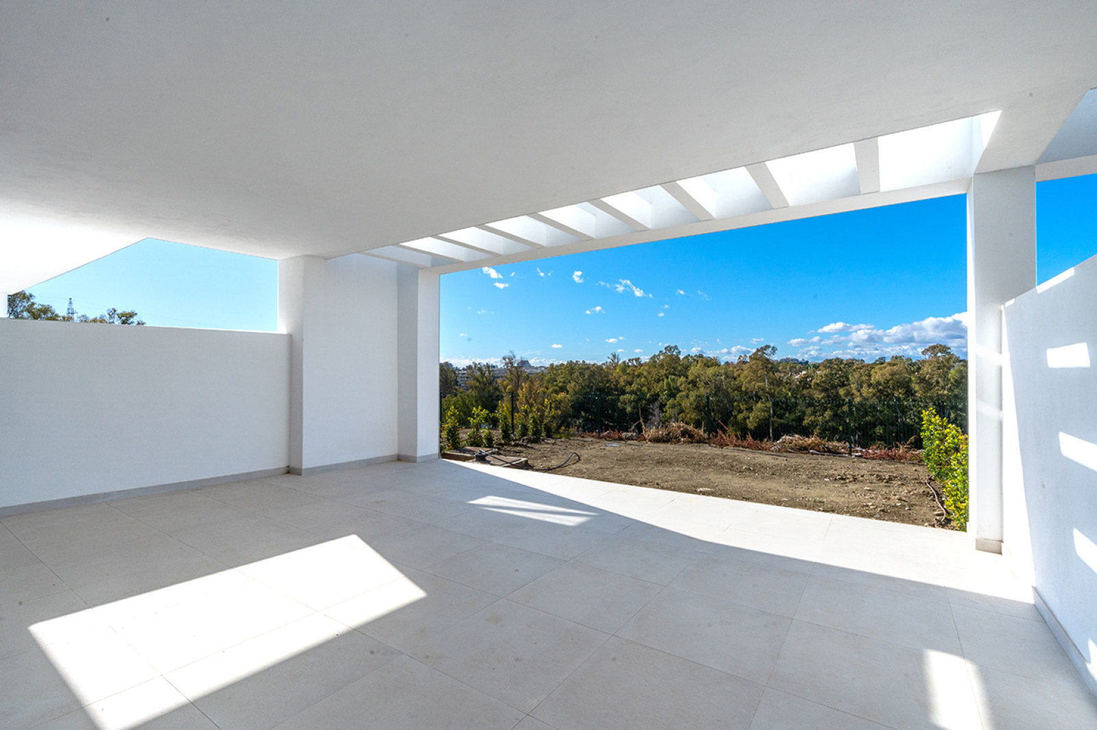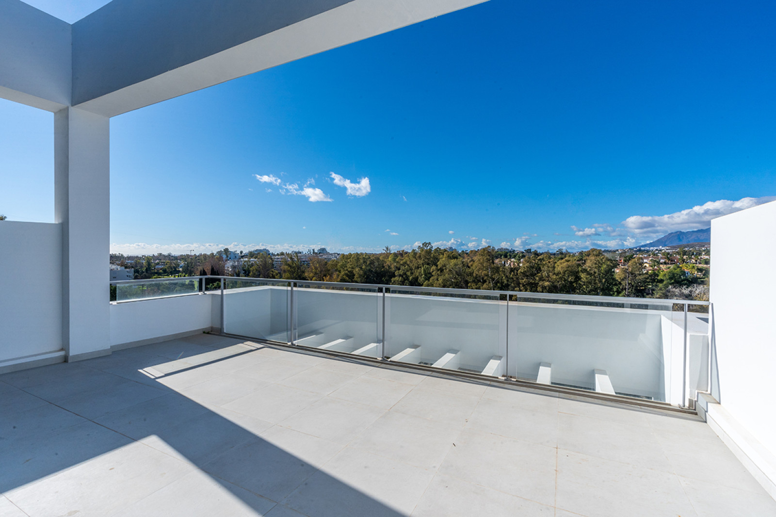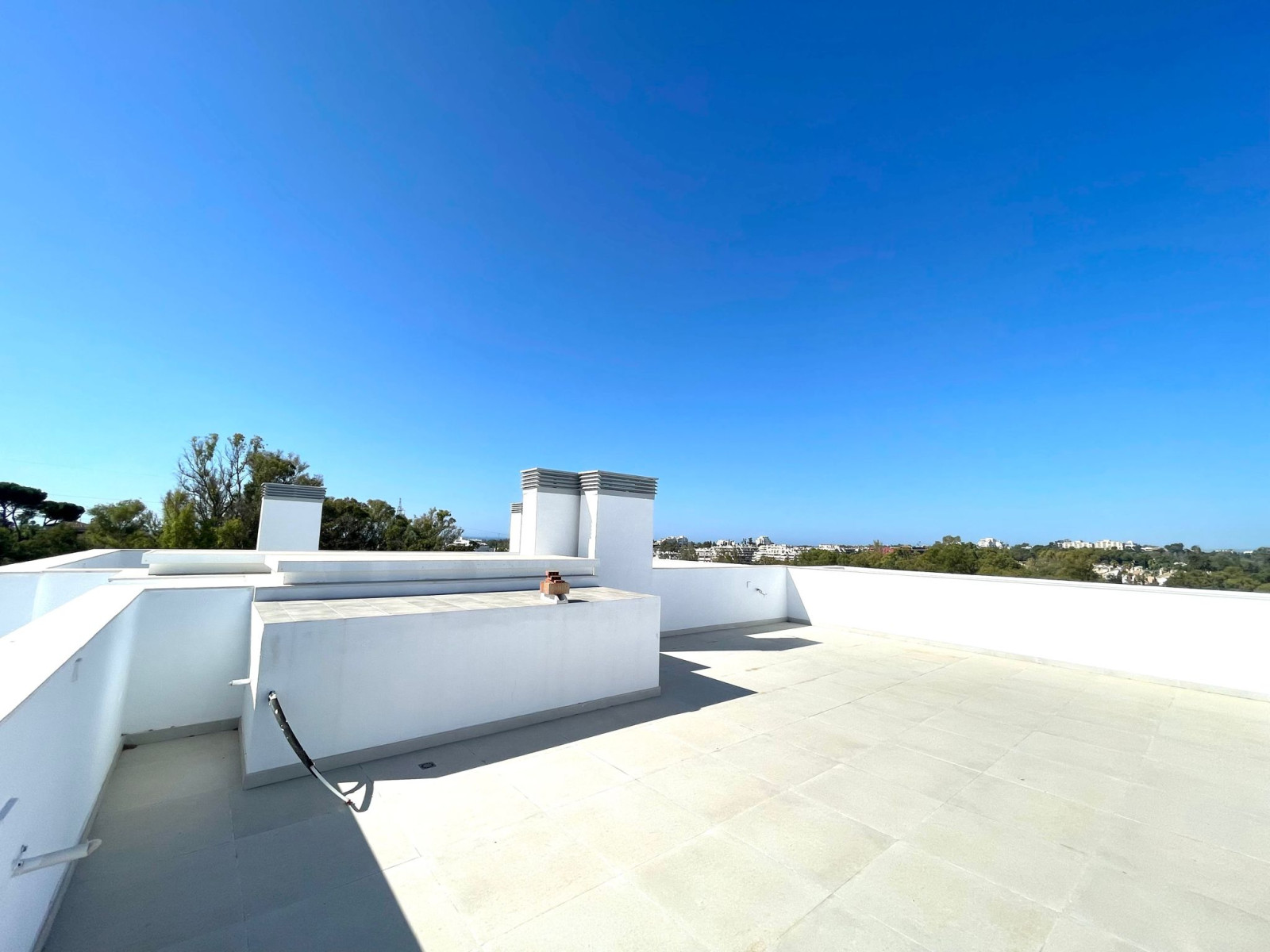 EXCLUSIVA VILLA SEMI ADOSADA DE NUEVA CONSTRUCCIÓN Espectacular villa de nueva construcción en urb. Guadalmina Alta, con los mejores estándares de construcción, La vivienda dispone de 2 plantas más sótano, en planta baja hay un gran salón comedor con cocina totalmente equipada con concepto abierto, lavadero, hall de entrada, porche y terraza con acceso a jardín privado. En la planta alta nos encontramos los dormitorios con cuartos de baños, y escalera que da al solarium. En la planta sótano dispone de garaje, trastero, y sala multiusos. Tiene suelo radiante en toda la casa y aire acondicionado. La comunidad dispone de gran piscina, piscina infantil, zona coworking y gimnasio a parte de zona ajardinada.
