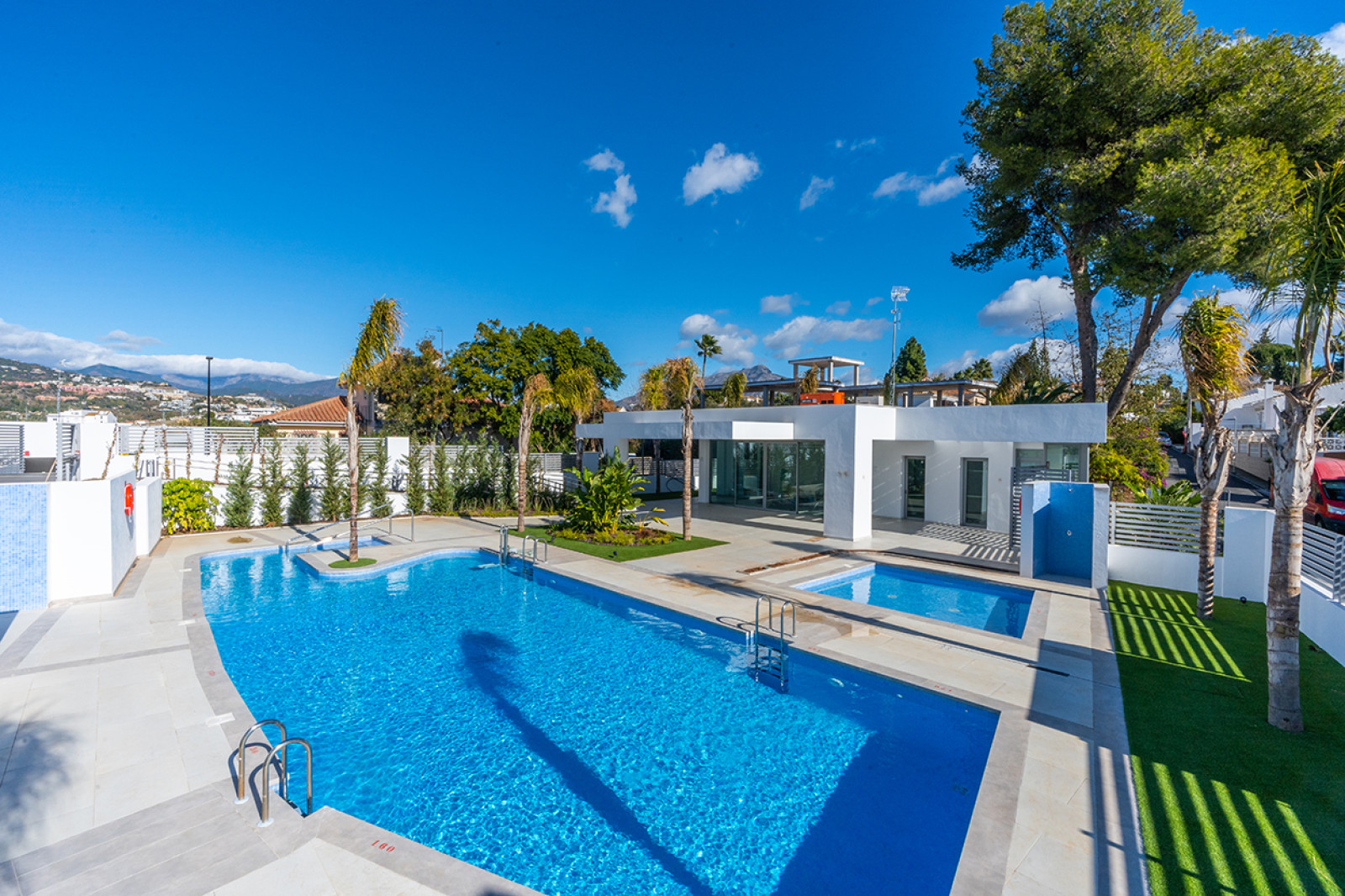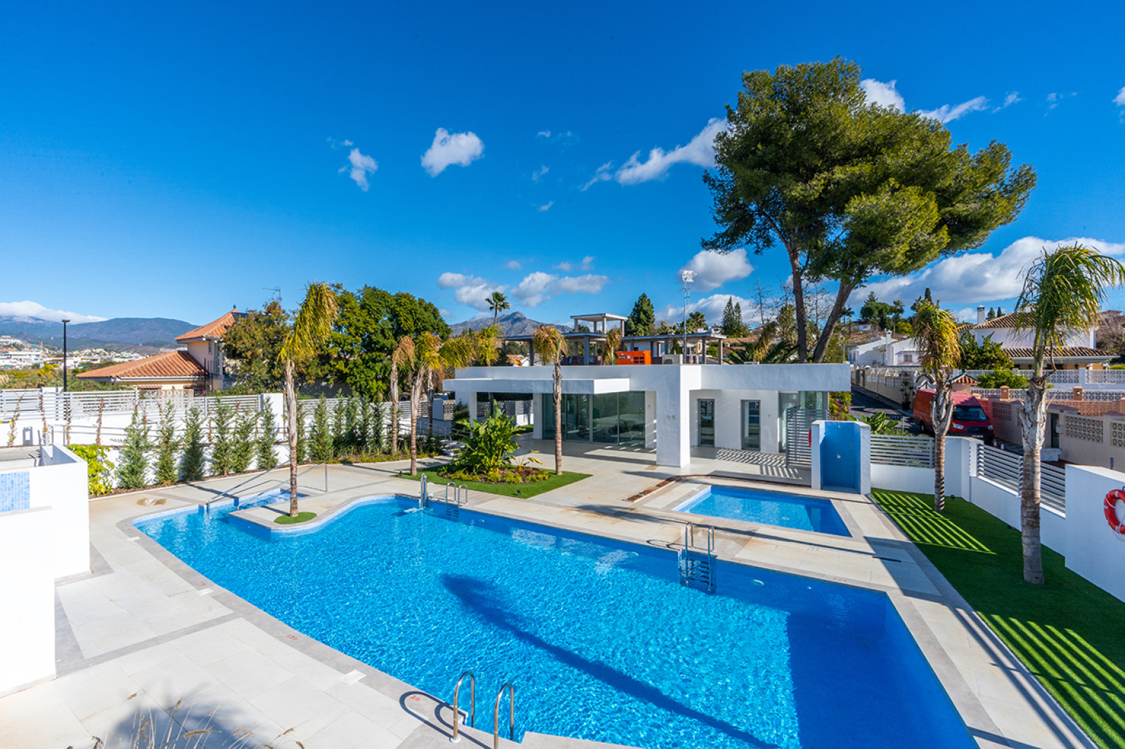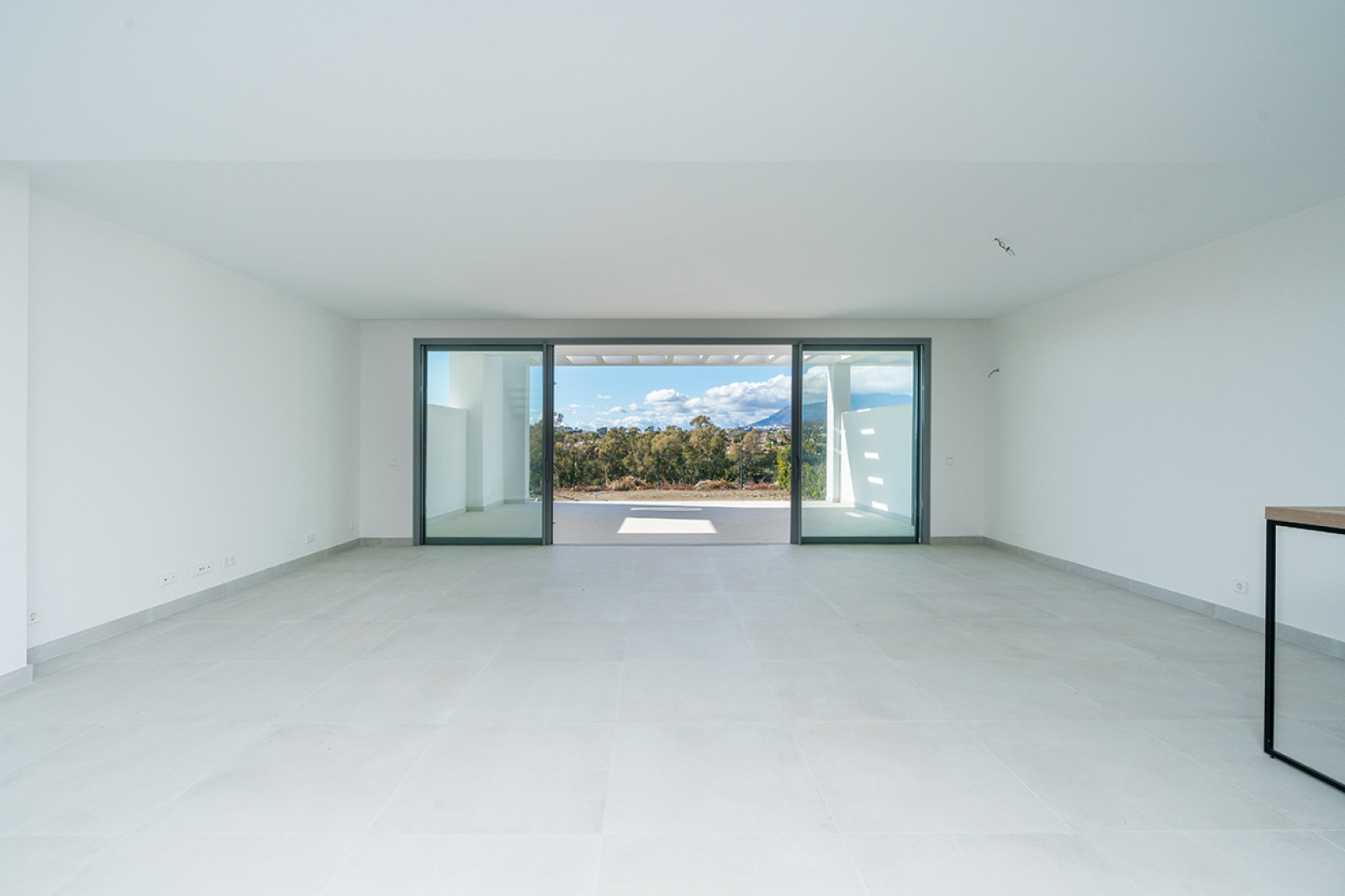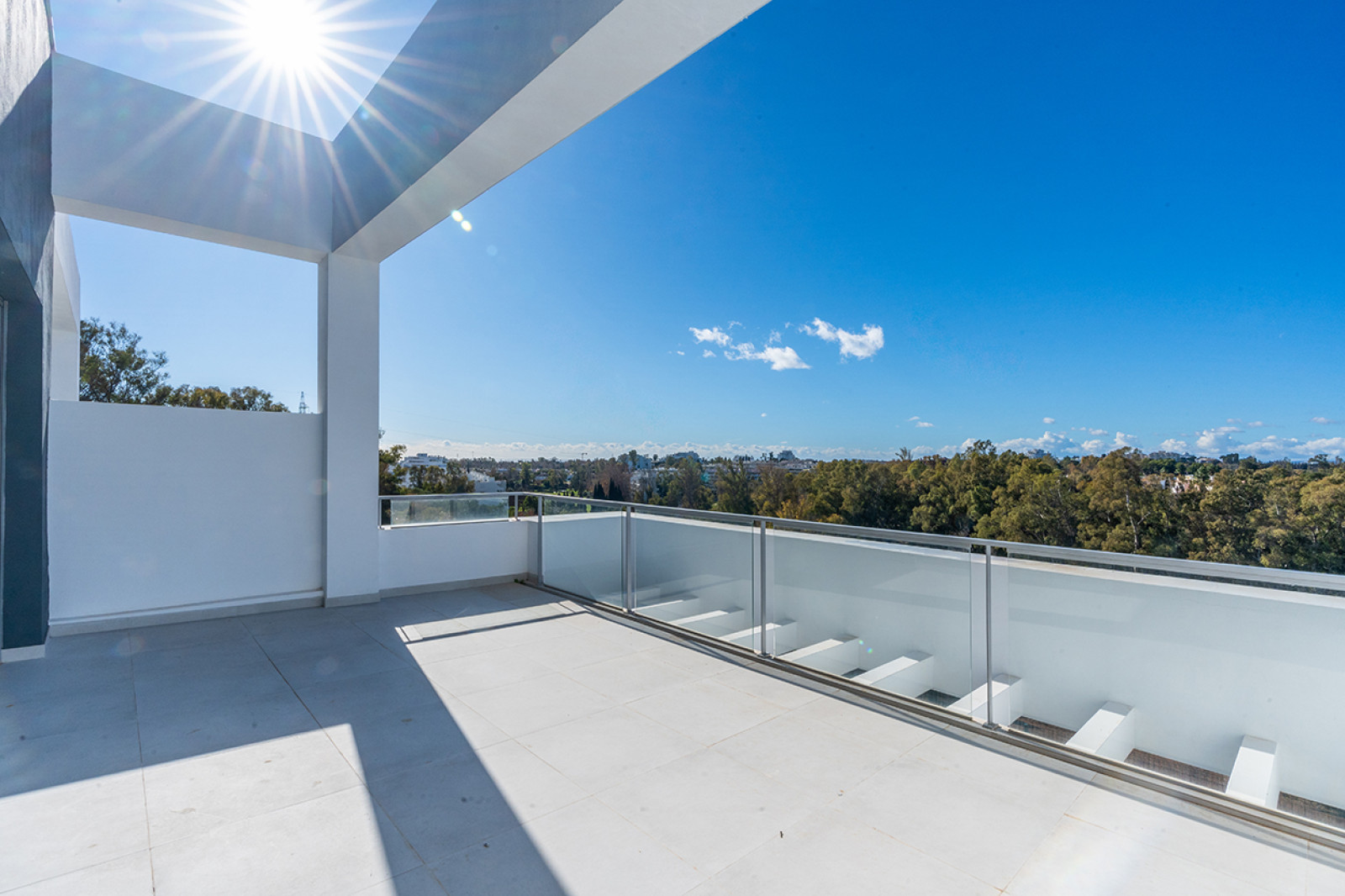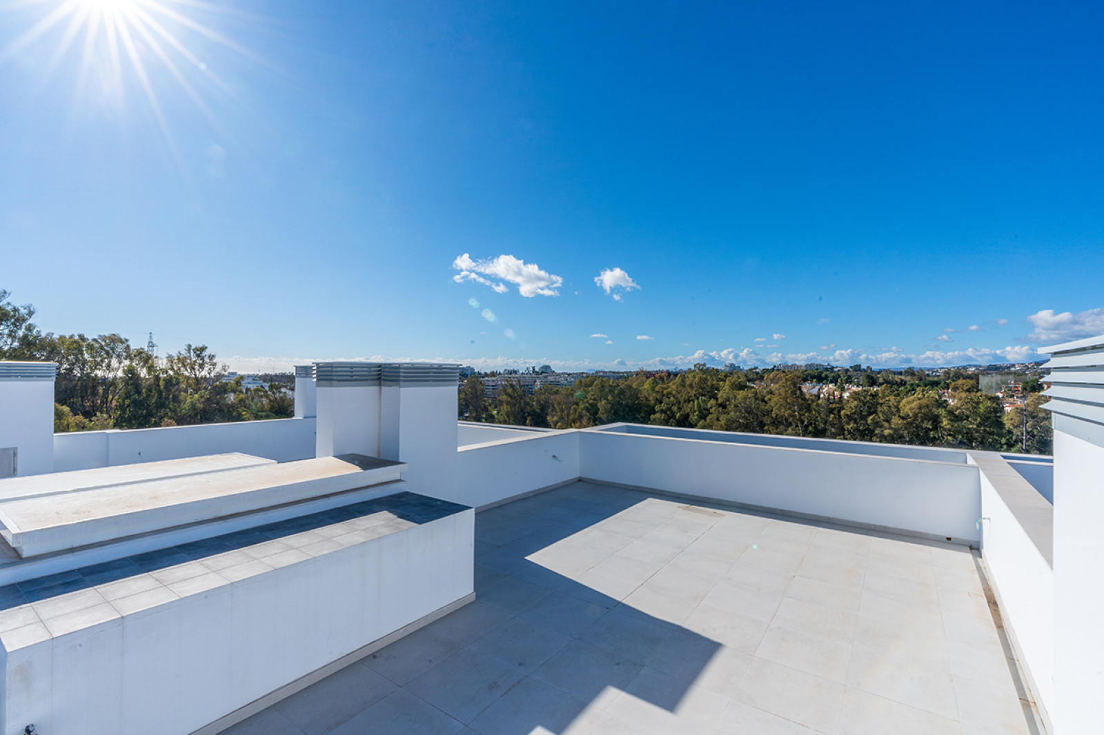 EXCLUSIVA VILLA SEMI ADOSADA DE NUEVA CONSTRUCCIÓN Espectacular villa de nueva construcción en urb. Guadalmina Alta, con los mejores estándares de construcción, La vivienda dispone de 2 plantas más sótano, en planta baja hay un gran salón comedor con cocina totalmente equipada con concepto abierto, lavadero, hall de entrada, porche y terraza con acceso a jardín privado. En la planta alta nos encontramos los dormitorios con cuartos de baños, y escalera que da al solarium. En la planta sótano dispone de garaje, trastero, y sala multiusos. Tiene suelo radiante en toda la casa y aire acondicionado. La comunidad dispone de gran piscina, piscina infantil, zona coworking y gimnasio a parte de zona ajardinada.