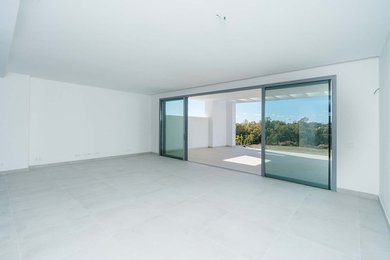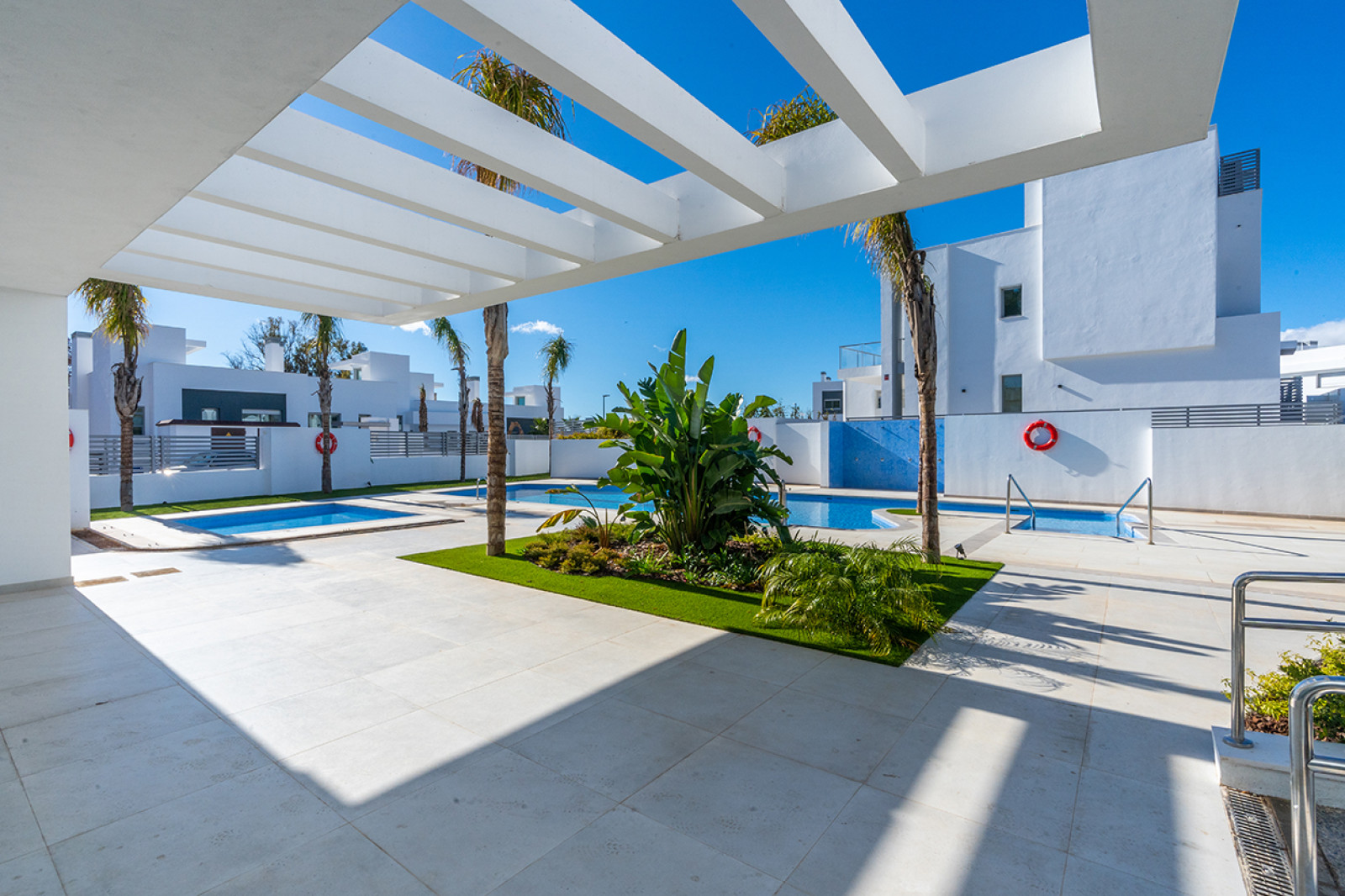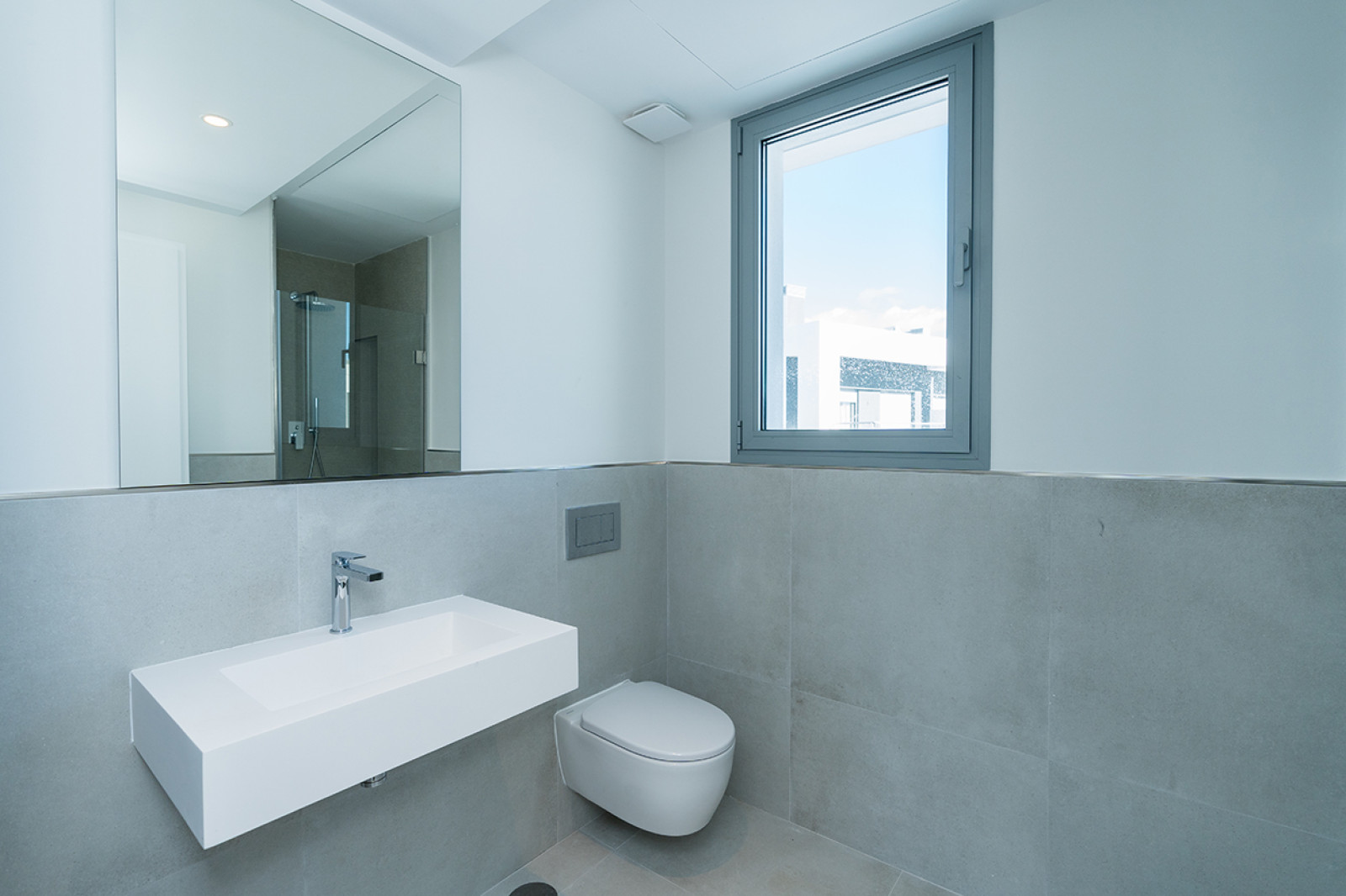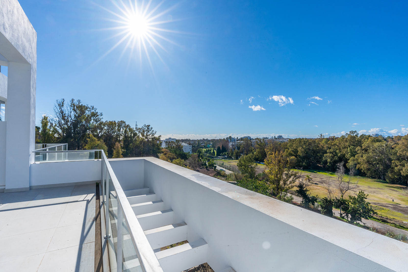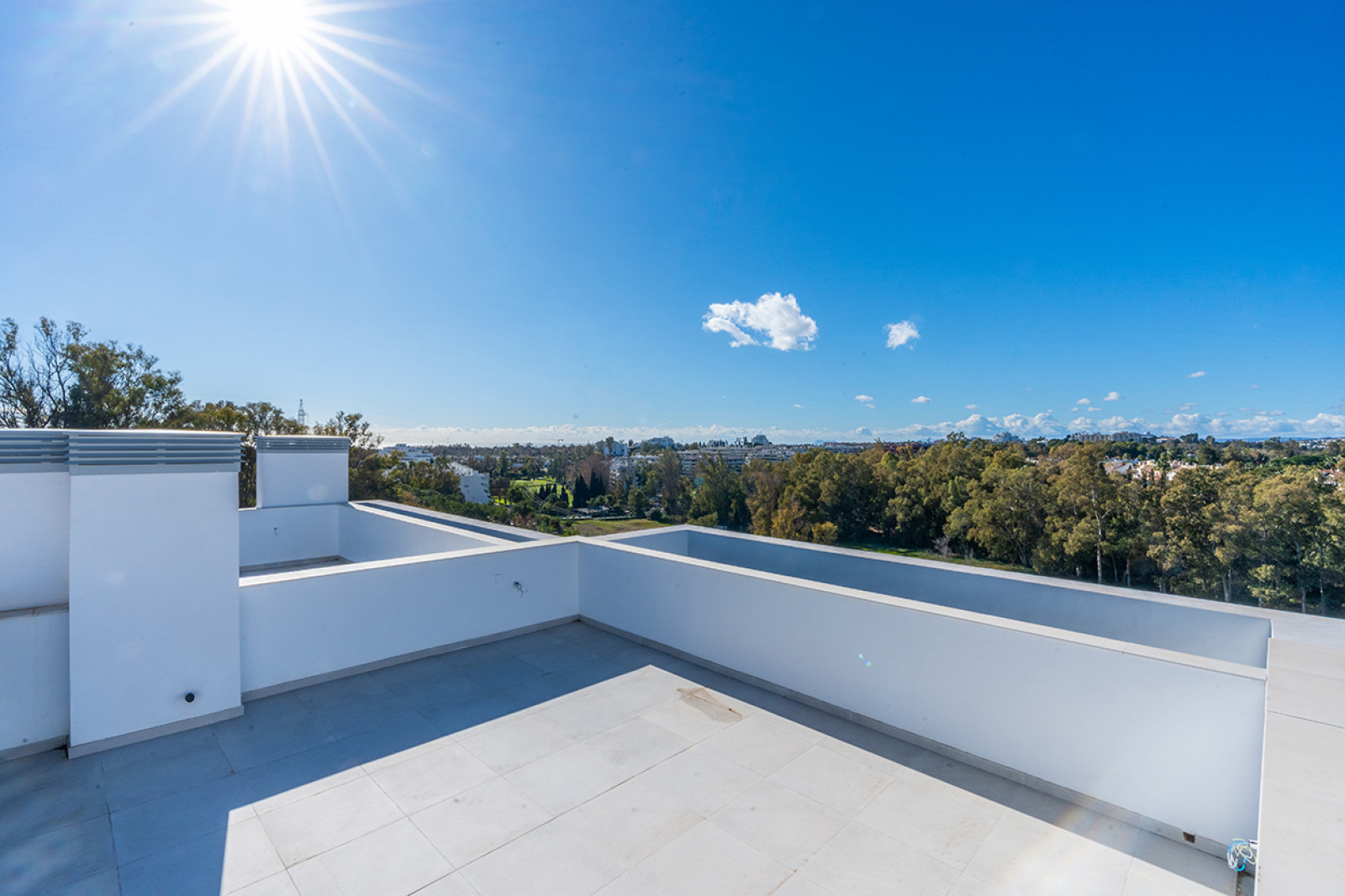 EXCLUSIVA VILLA SEMI ADOSADA DE NUEVA CONSTRUCCIÓN Espectacular villa de nueva construcción en urb. Guadalmina Alta, con los mejores estándares de construcción, La vivienda dispone de 2 plantas más sótano, en planta baja hay un gran salón comedor con cocina totalmente equipada con concepto abierto, lavadero, hall de entrada, porche y terraza con acceso a jardín privado. En la planta alta nos encontramos los dormitorios con cuartos de baños, y escalera que da al solarium. En la planta sótano dispone de garaje, trastero, y sala multiusos. Tiene suelo radiante en toda la casa y aire acondicionado. La comunidad dispone de gran piscina, piscina infantil, zona coworking y gimnasio a parte de zona ajardinada.