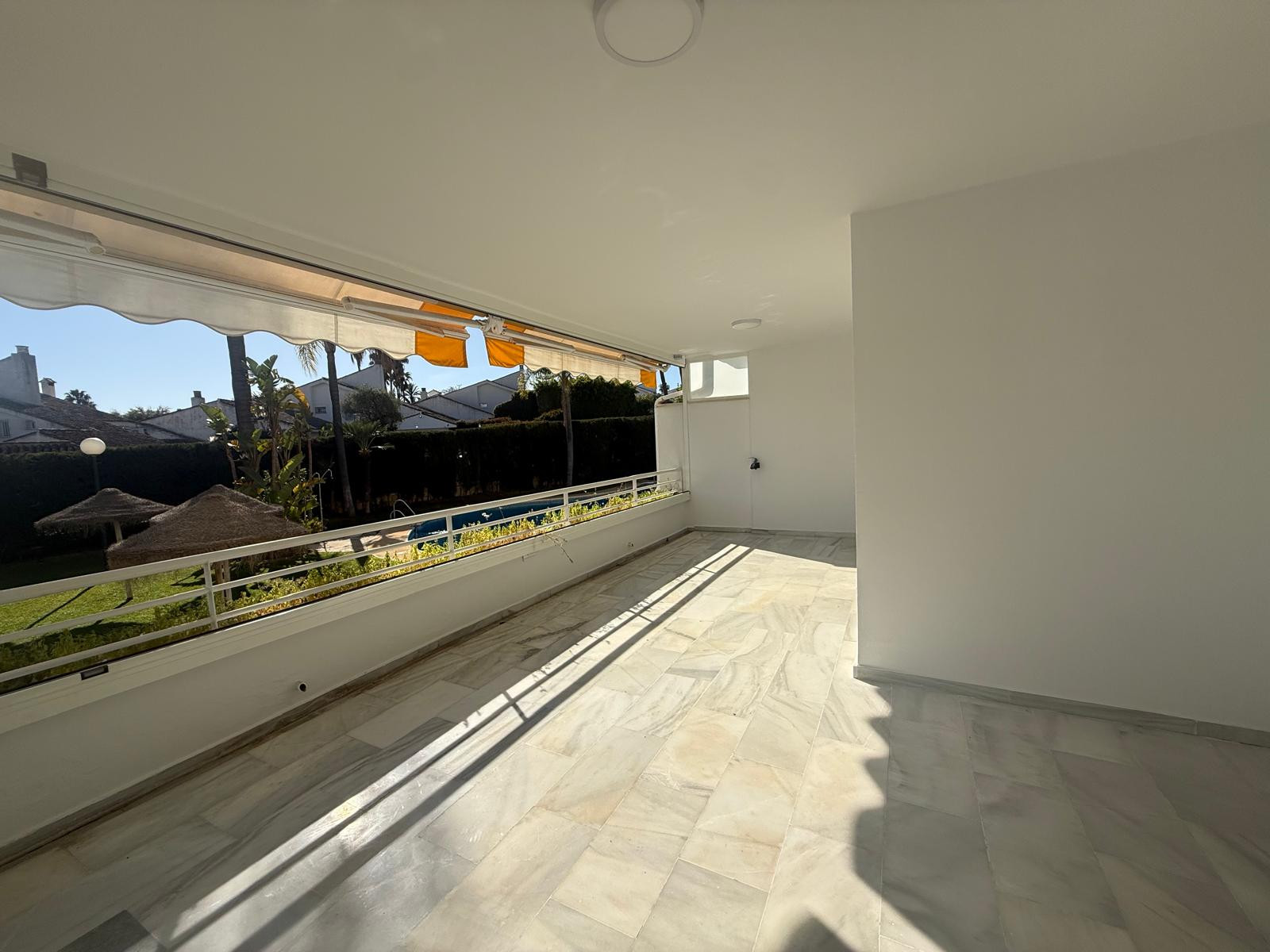 Alquiler de Apartamento en Guadalmina Baja con Terraza y Garaje Se alquila apartamento en la zona de Guadalmina Baja, una ubicación tranquila y muy bien comunicada. La vivienda cuenta con dos dormitorios, dos baños y aire acondicionado. Uno de sus mayores atractivos es la terraza con orientación oeste, que recibe sol de tarde y está equipada con cristales tipo Lumon, lo que permite aprovechar este espacio en cualquier época. El precio incluye una plaza de garaje. Existe flexibilidad para alquilar por larga temporada o bien por el periodo escolar, de septiembre a junio. Se solicitan dos meses de depósito para entrar a vivir en este entorno cómodo y cercano a la playa.